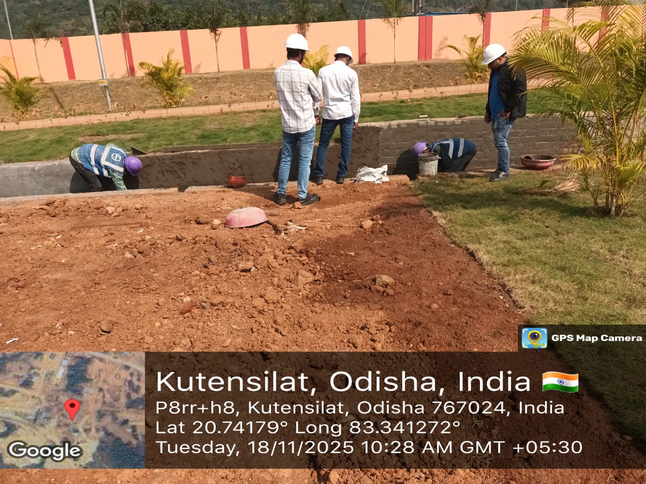 Boundary wall outer side plastering work is in progress at Pump House.