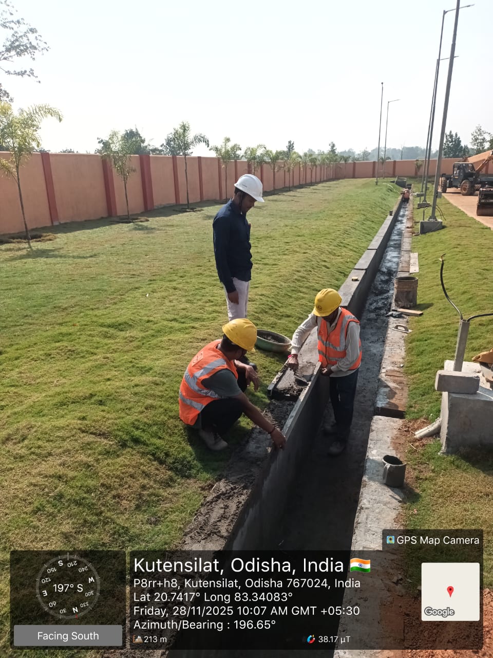 Slump test is in progress for internal drainage near boundary wall at Pump House.