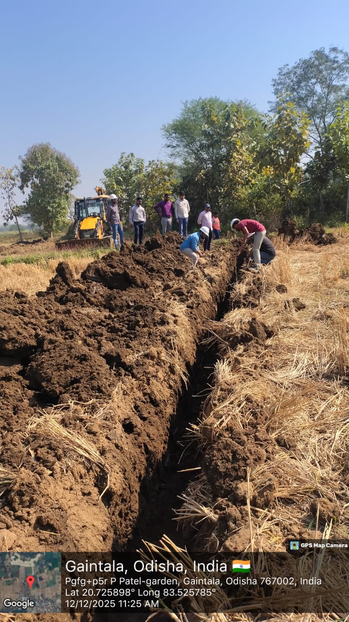 Excavation work is in progress for laying of 75mm Dia HDPE pipe of 1Ha OCS No-0213080- C12A at village Gaintala in presence of DoWR SDO, JE and PMC team.