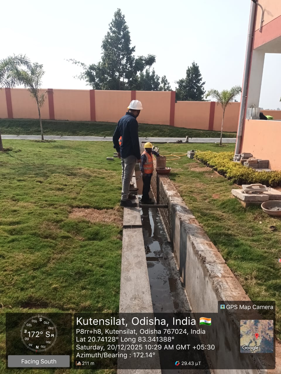 Water curing on plinth beam staff quarter.