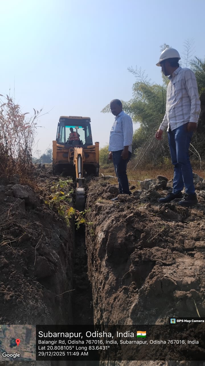 Excavation work is in progress for 75mm Dia HDPE Pipeline in between J- 7197 to J-7201 at village Pua, in presence of DoWR AE, PMC Team and L&T personal.