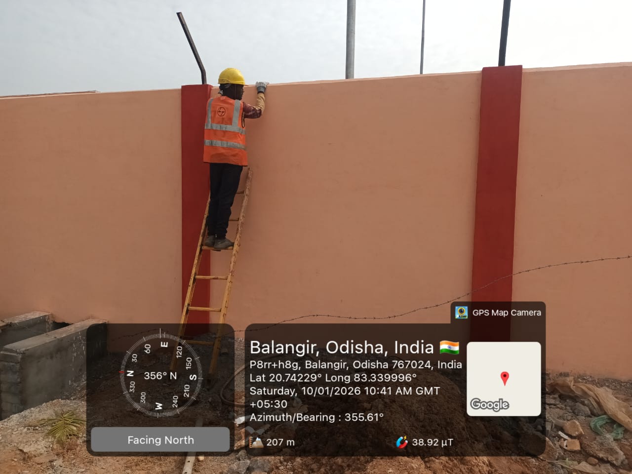 Boundary wall wire fencing supporting Indian Standard Angle fixing work is in progress at Pump House.