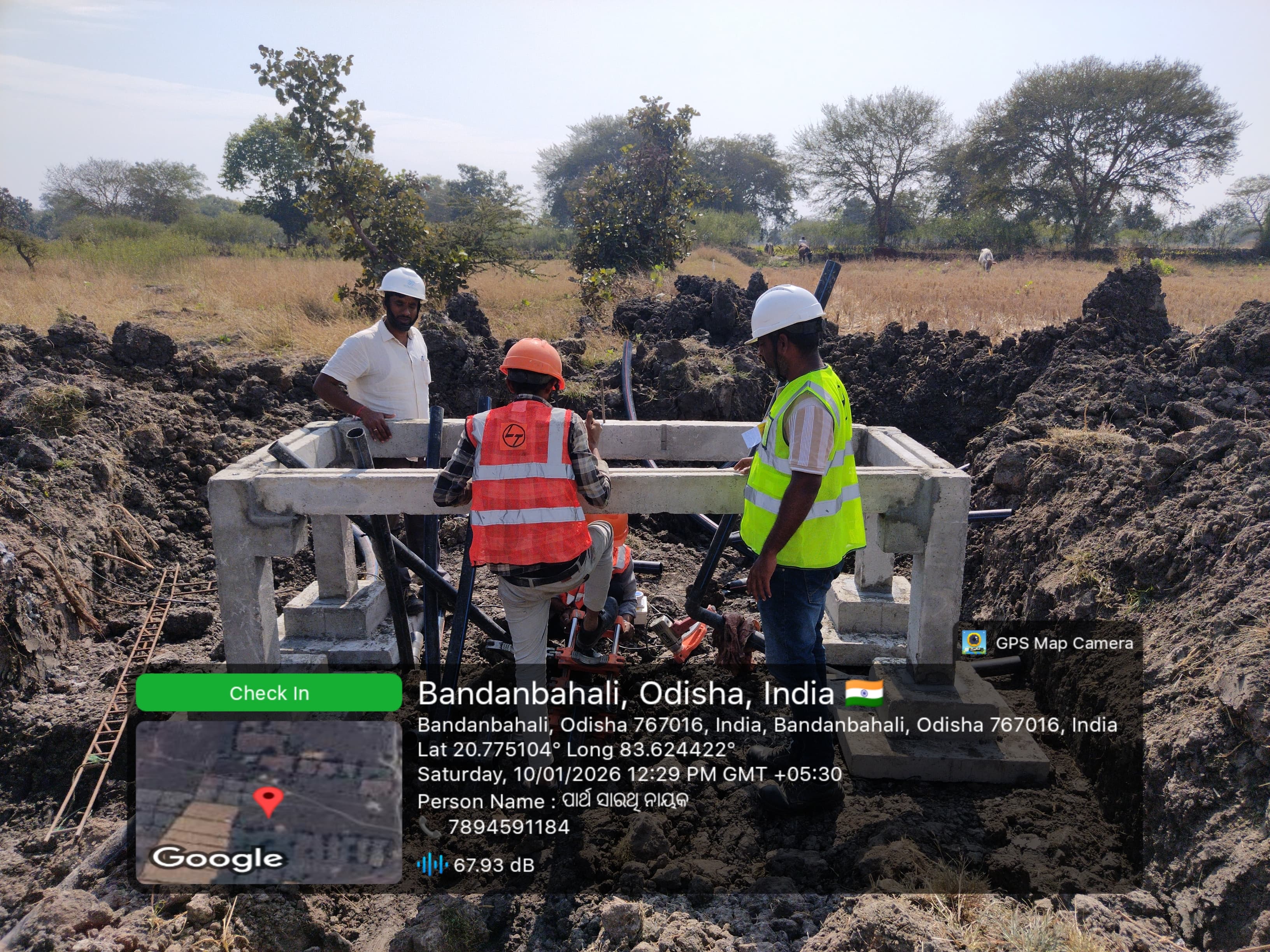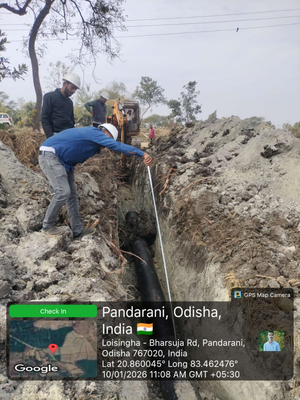Excavation work is in progress for Laying of 350mm Dia DI pipe in between node from J-508 to J-155 (RM-9) near village Pandarani in presence of PMC team.