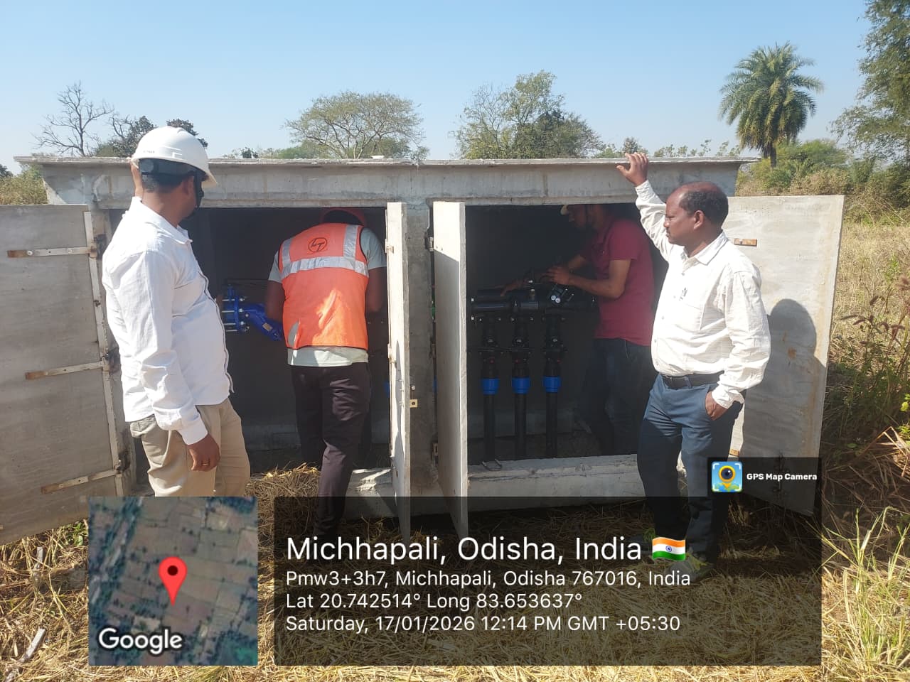 Bermad equipment installation work is in progress of OCS no- 0213038-C01A at village Bhadrapali in presence of DoWR AE amd PMC team.