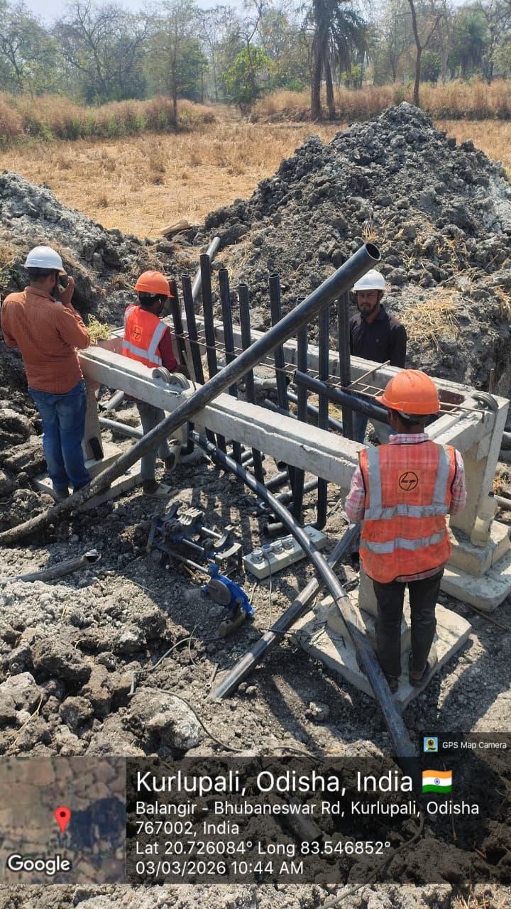 OCS chamber piping work is in progress of OCS No-0213090-C03A at village Kurlupali in presence of PMC team and L&T personnel.