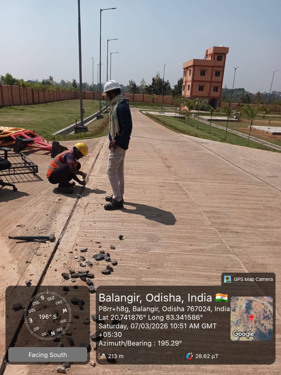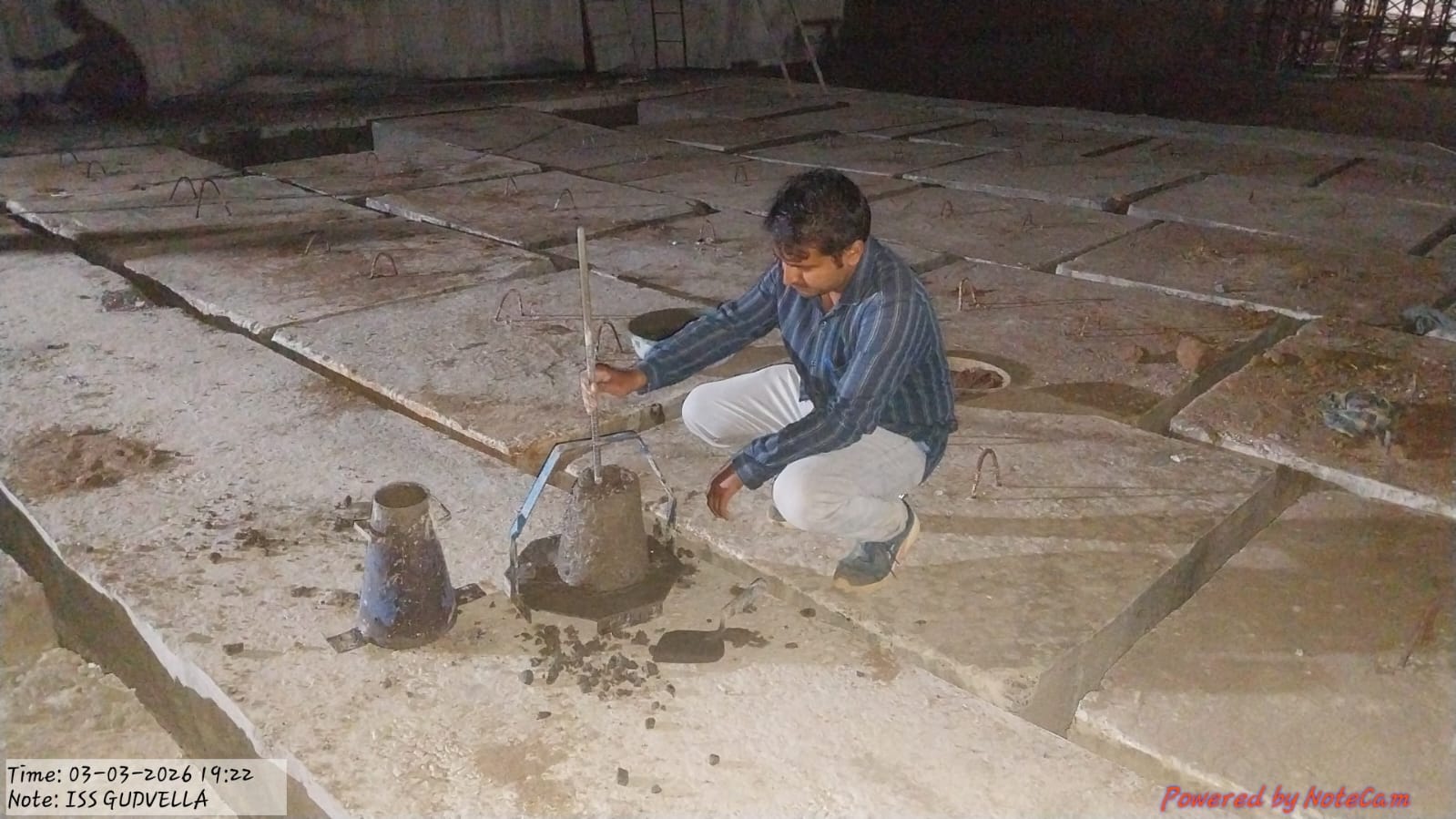 Slump testing work is in progress for internal approach road block casting at Pump House in presence of PMC team.