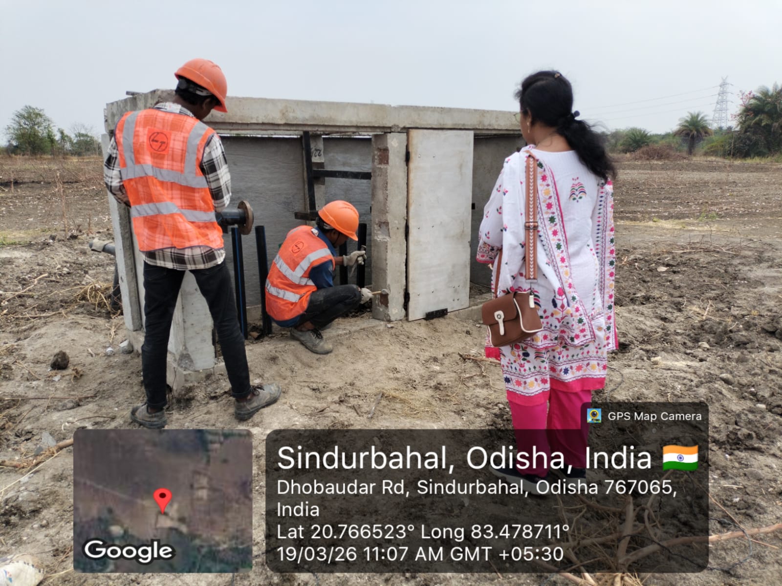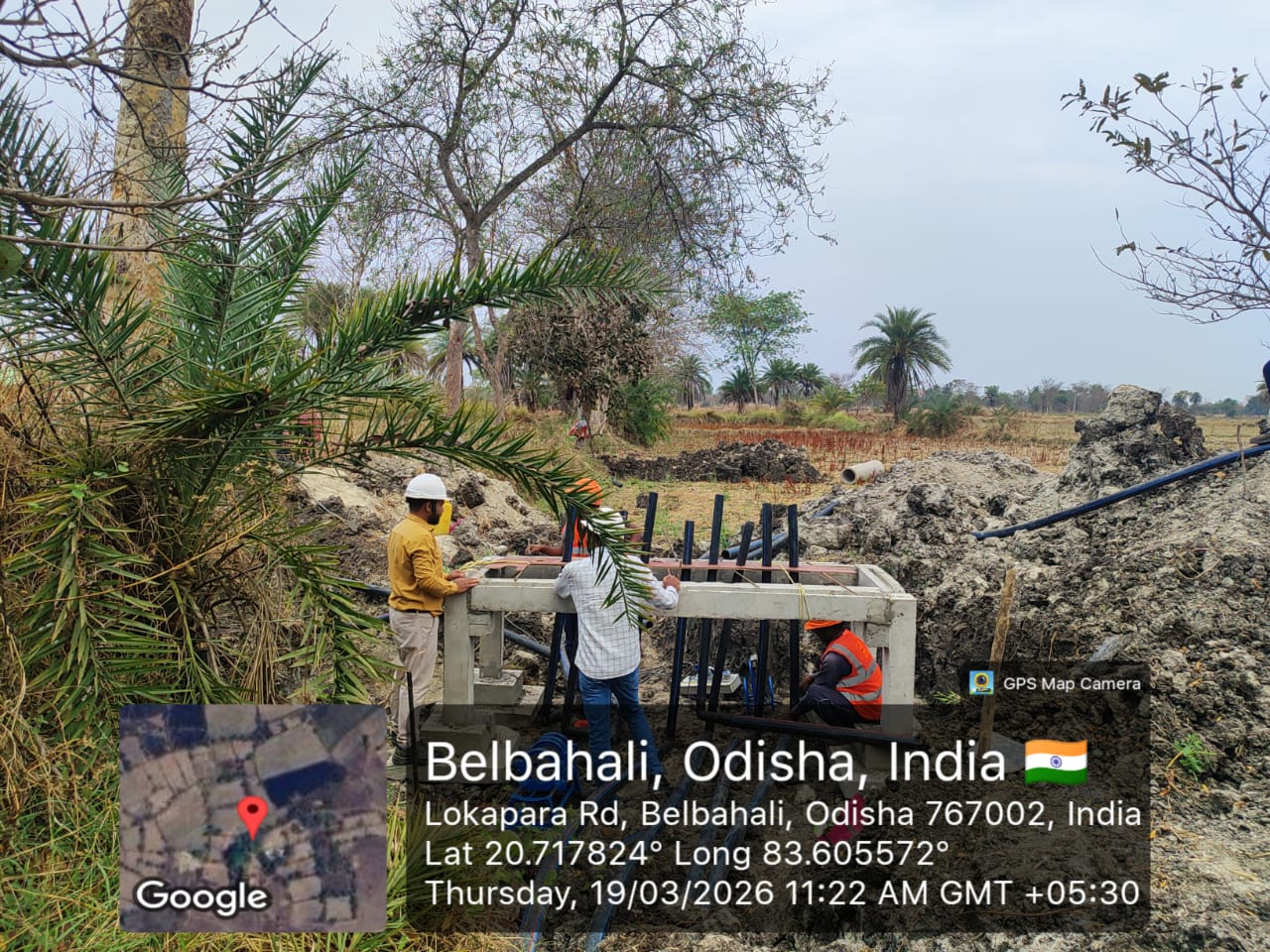 OCS chamber piping work is in progress of OCS No-0213026-C12B at village Jharbalangir in presence of DOWR Staff PMC team and L&T personnel.
