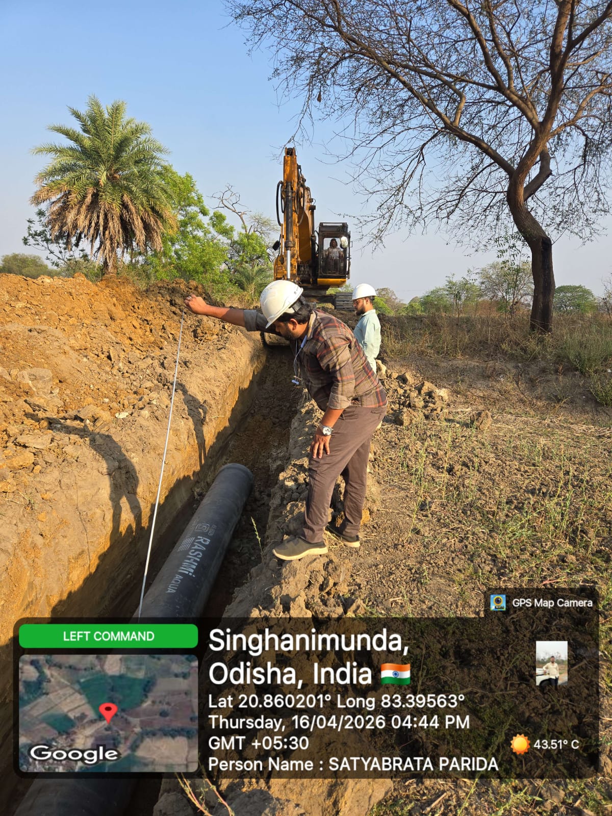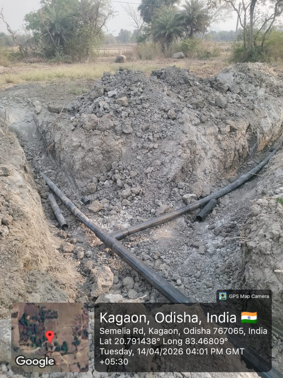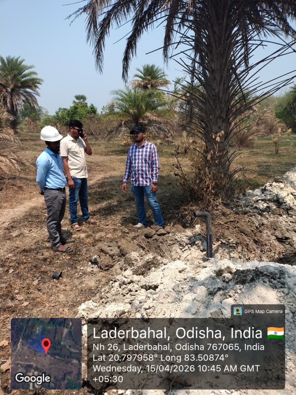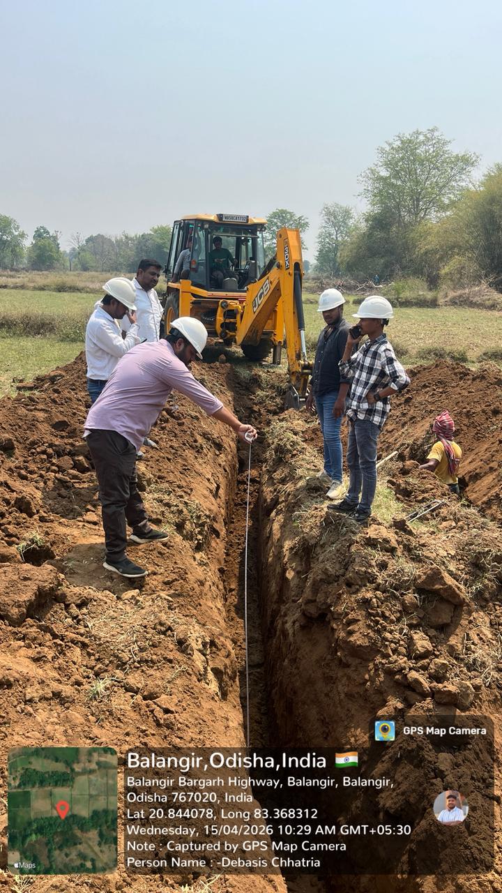 1 Ha outlet point fixing and HDPE Pipe laying work is in progress of OCS No. 0213116-C04A at village Padiabahali in presnece of SDO along with DoWR JE, PMC team and EPC Official.