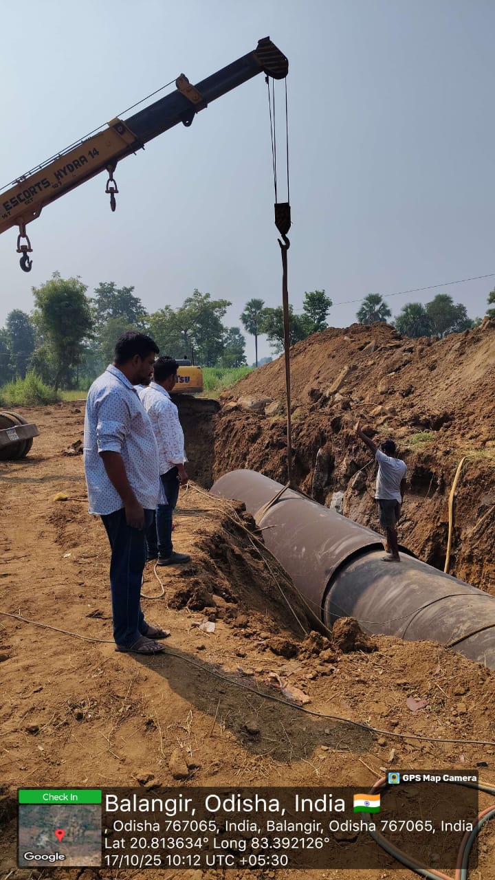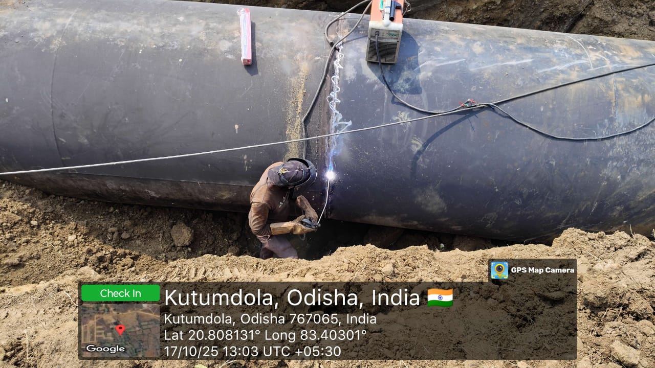 1800mm Dia MS pipe laying work is in progress from J-380 to J-450 at village Kushmel in presence of DoWR AE and PMC team.