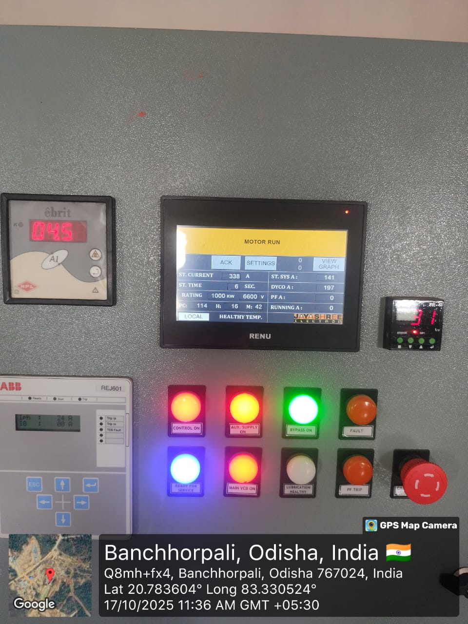 1000KW motor no 1 wet run is in progress in presence of ABB Services Engineer at Pump House, Zone 1- .