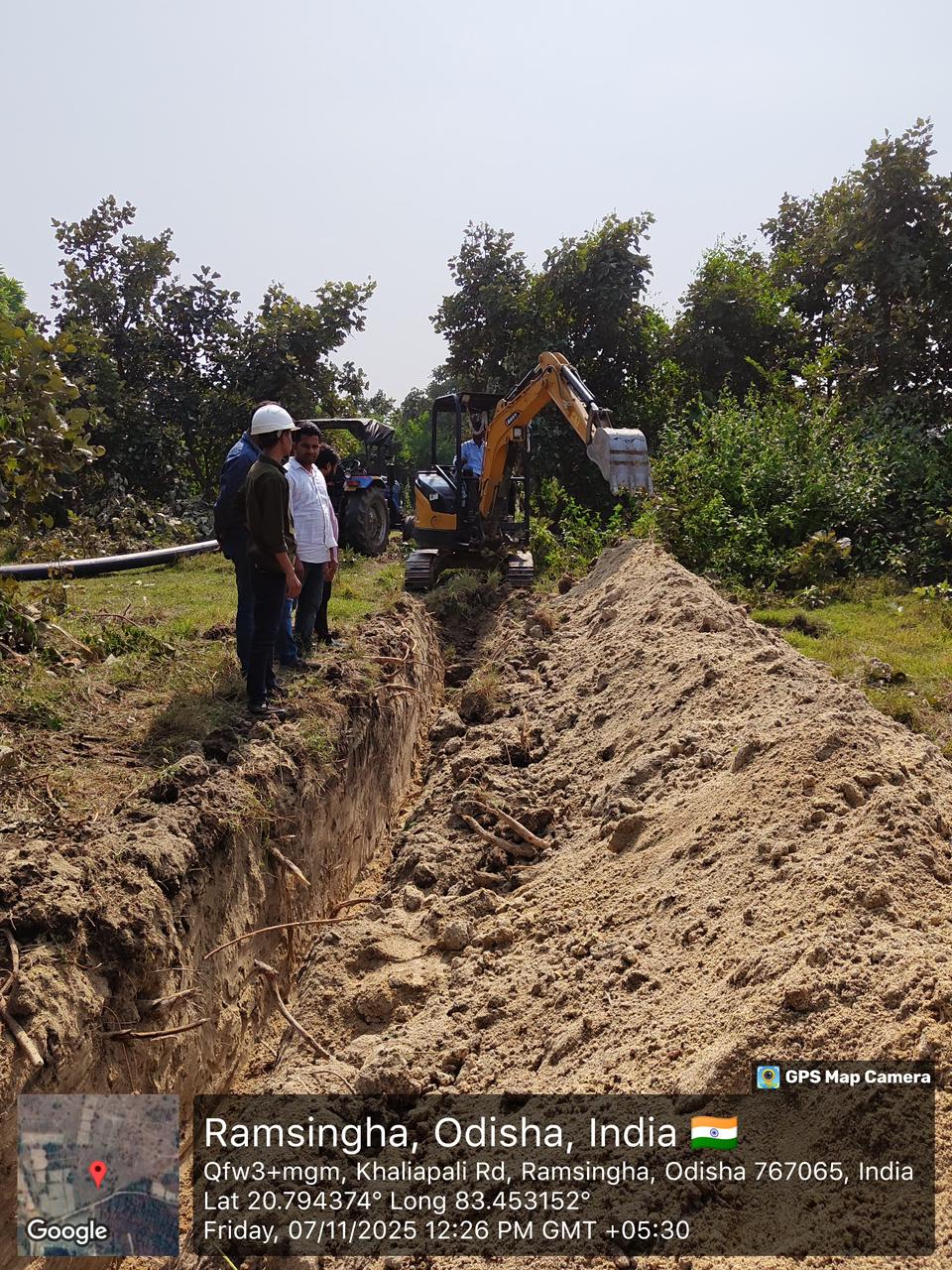 Excavation work is in progress for 200mm Dia HDPE pipeline pond connection between J-61 to J-433 to pond at Village Ramsingha.