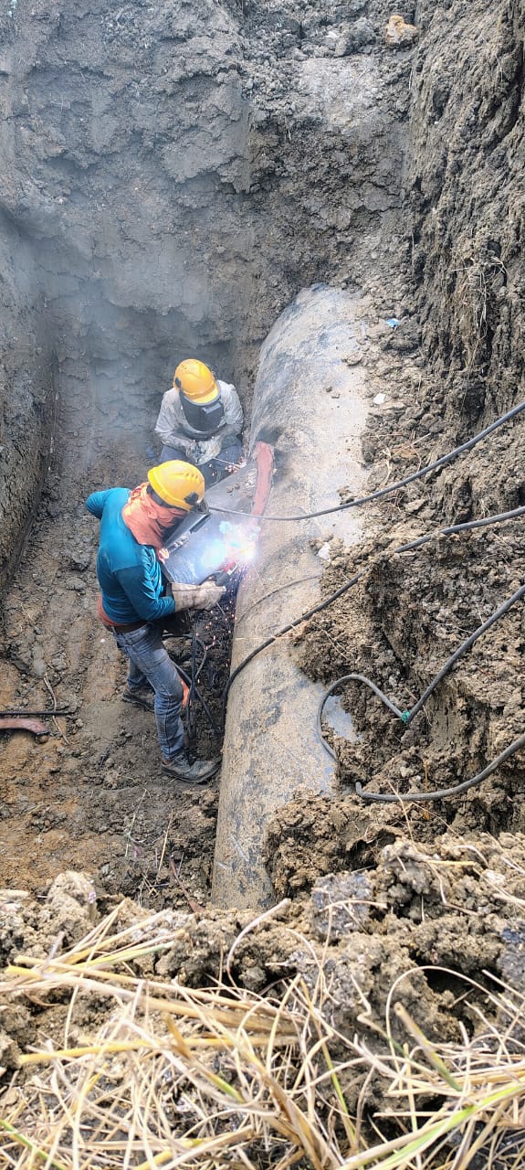 MS Pipe to DI pipe Branch connection Pad plate Welding work is in progress, Dy-2 RM-08 at Village Khairpali.