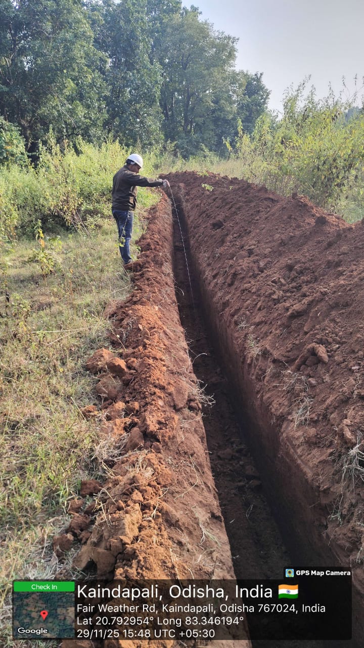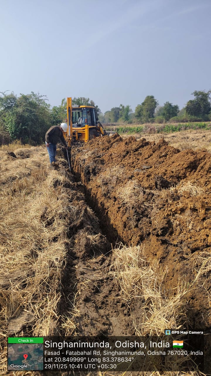 Excavation work is in progress for Dia 75mm HDPE pipeline LM - 17, LO330A OMS point at village Singhanimunda.