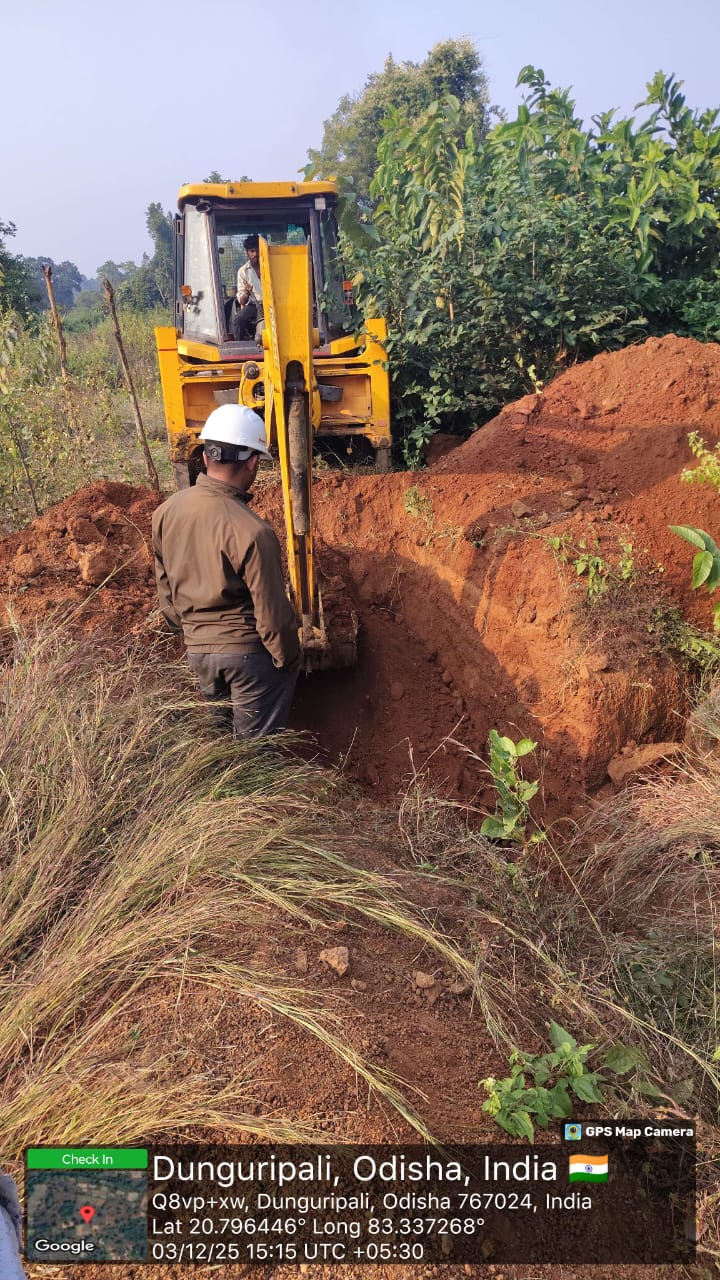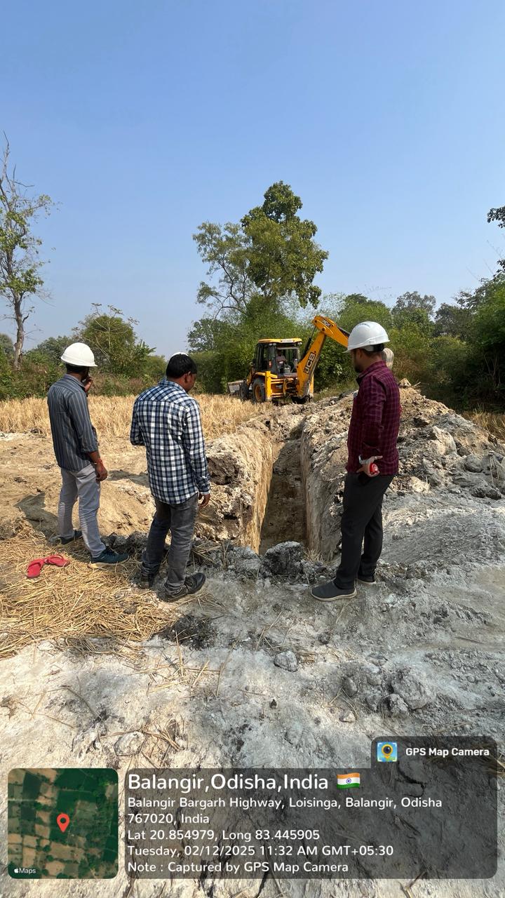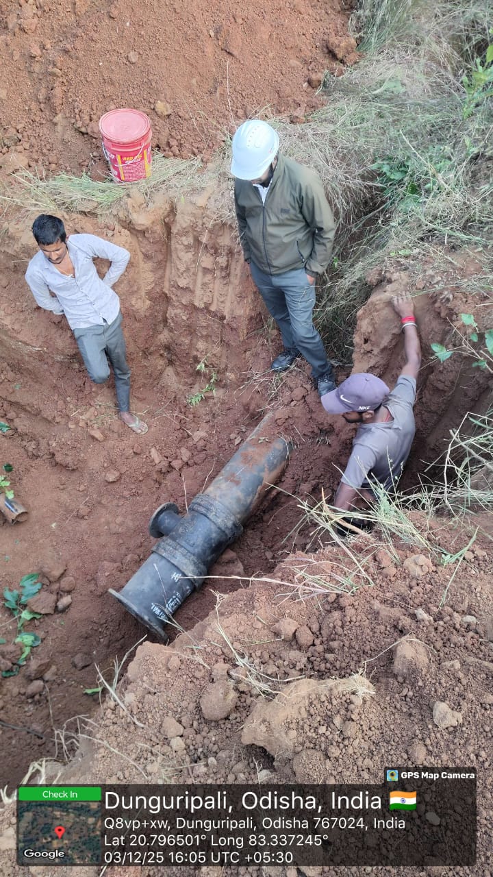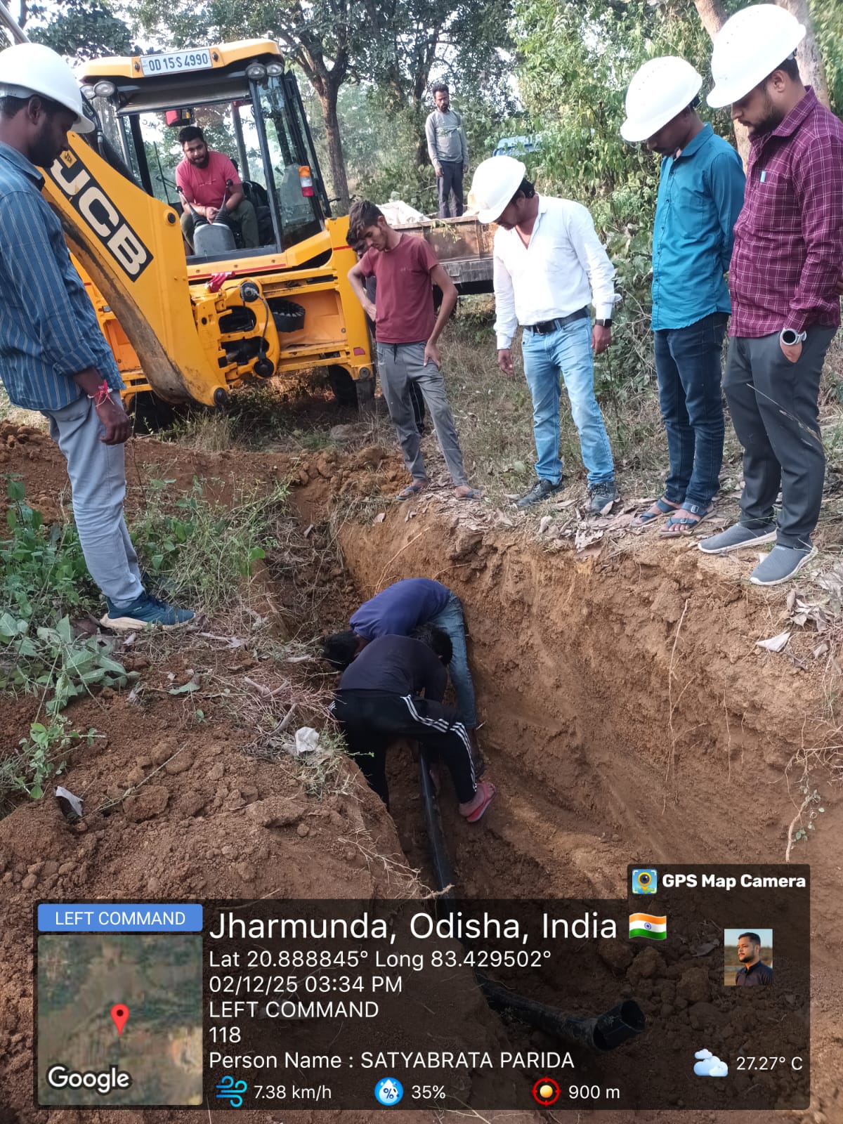 Excavation work in progress for connection of DI to HDPE line of node from J-135 to LO-206 (LM-11) near village Tentulikhunti In presence of PMC team and Meil personnel.