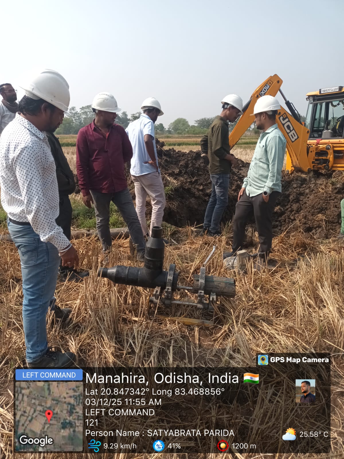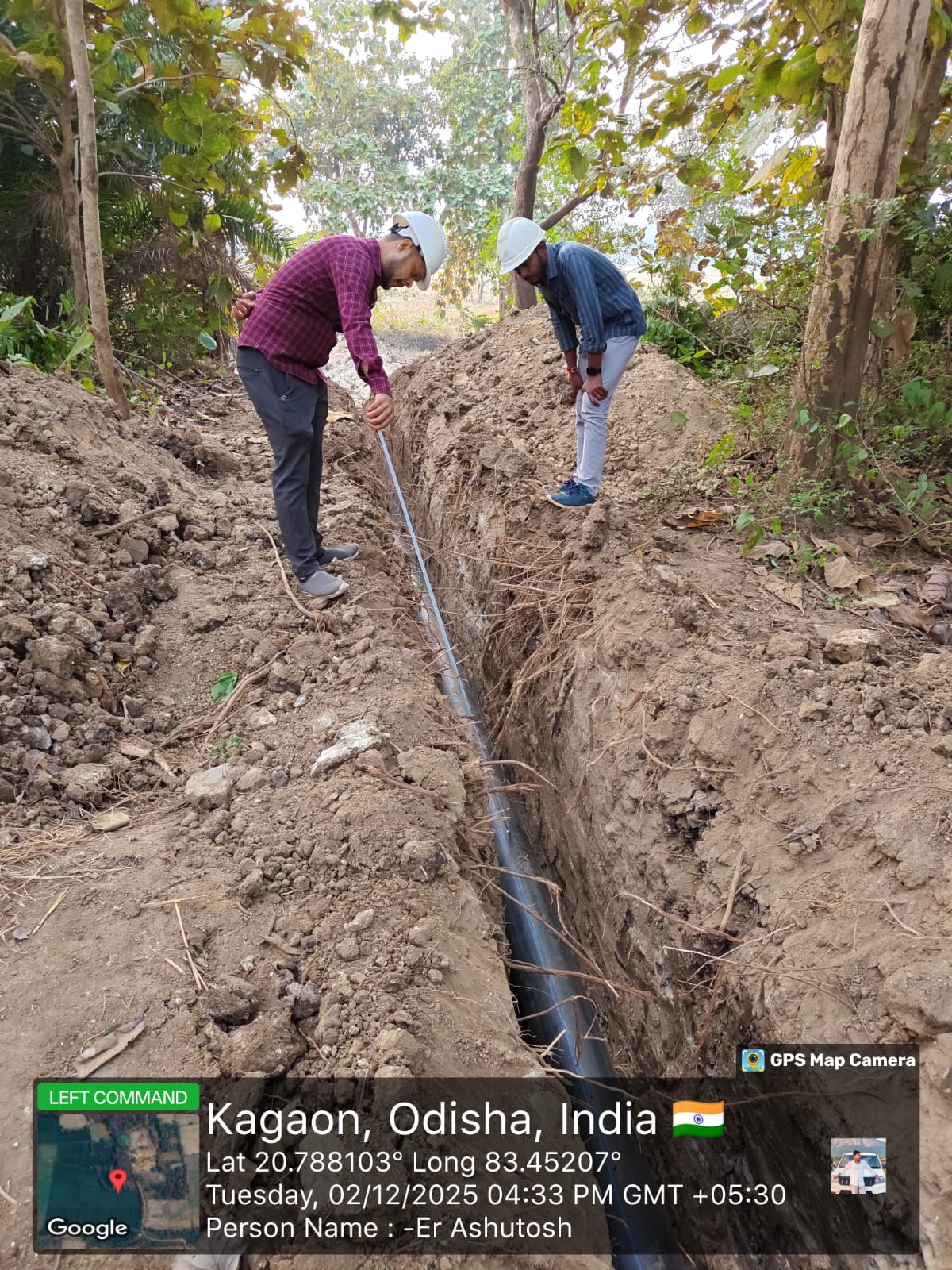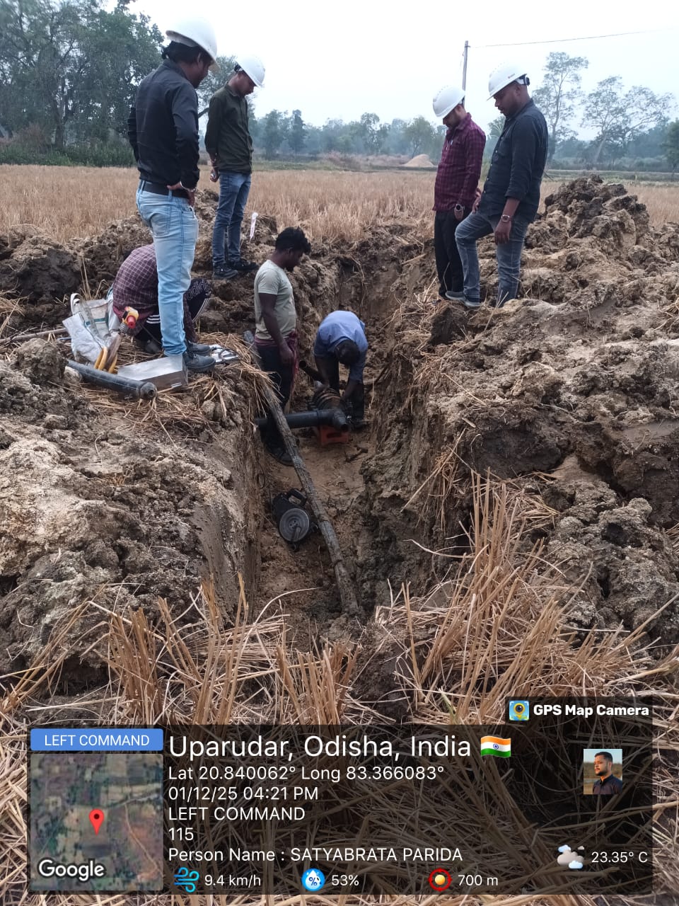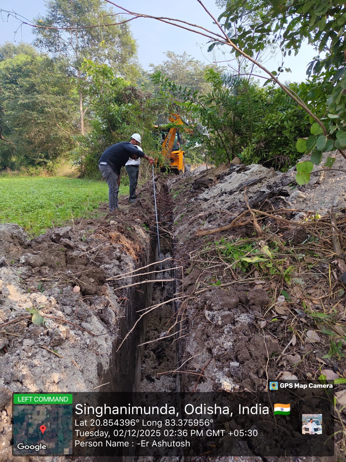 Excavation work in progress for connection of DI to HDPE line of node from J-135 to LO-206 (LM-11) near village Tentulikhunti In presence of PMC team and Meil personnel.