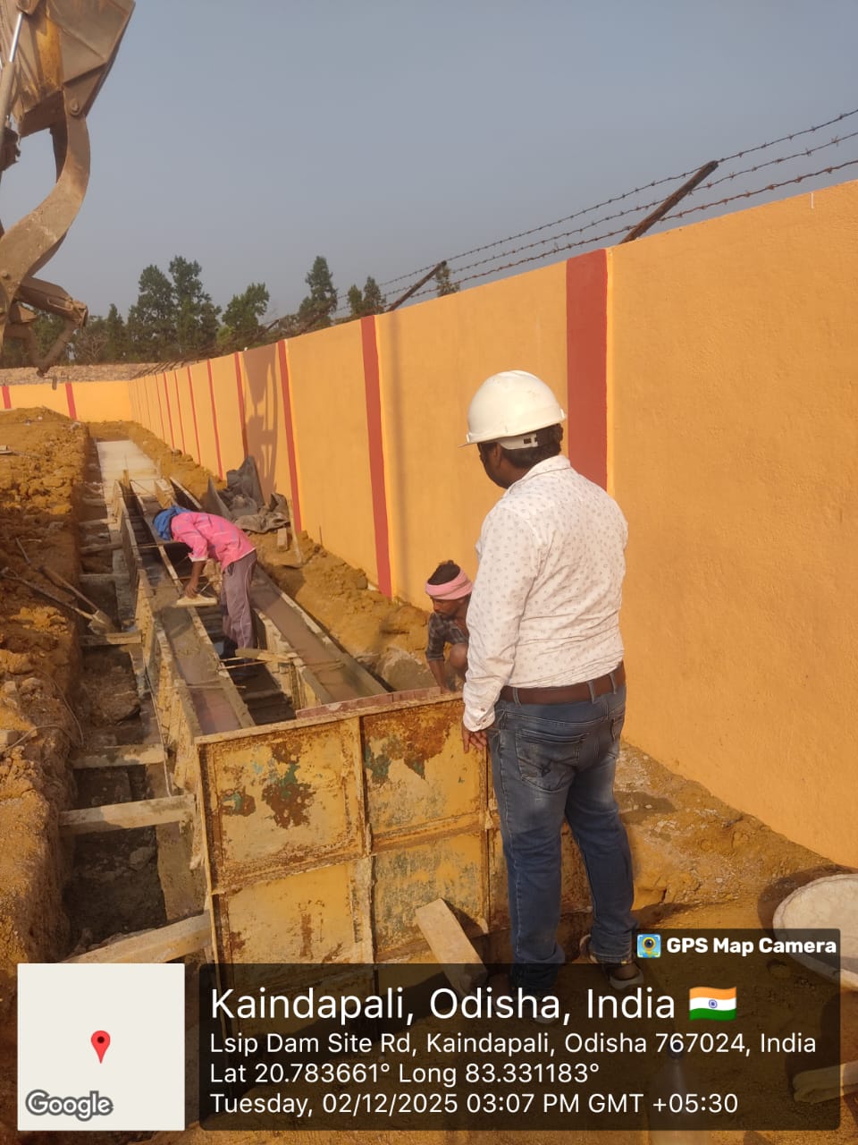 Internal drainage wall concreting work is in progress near boundary wall of Pump House.