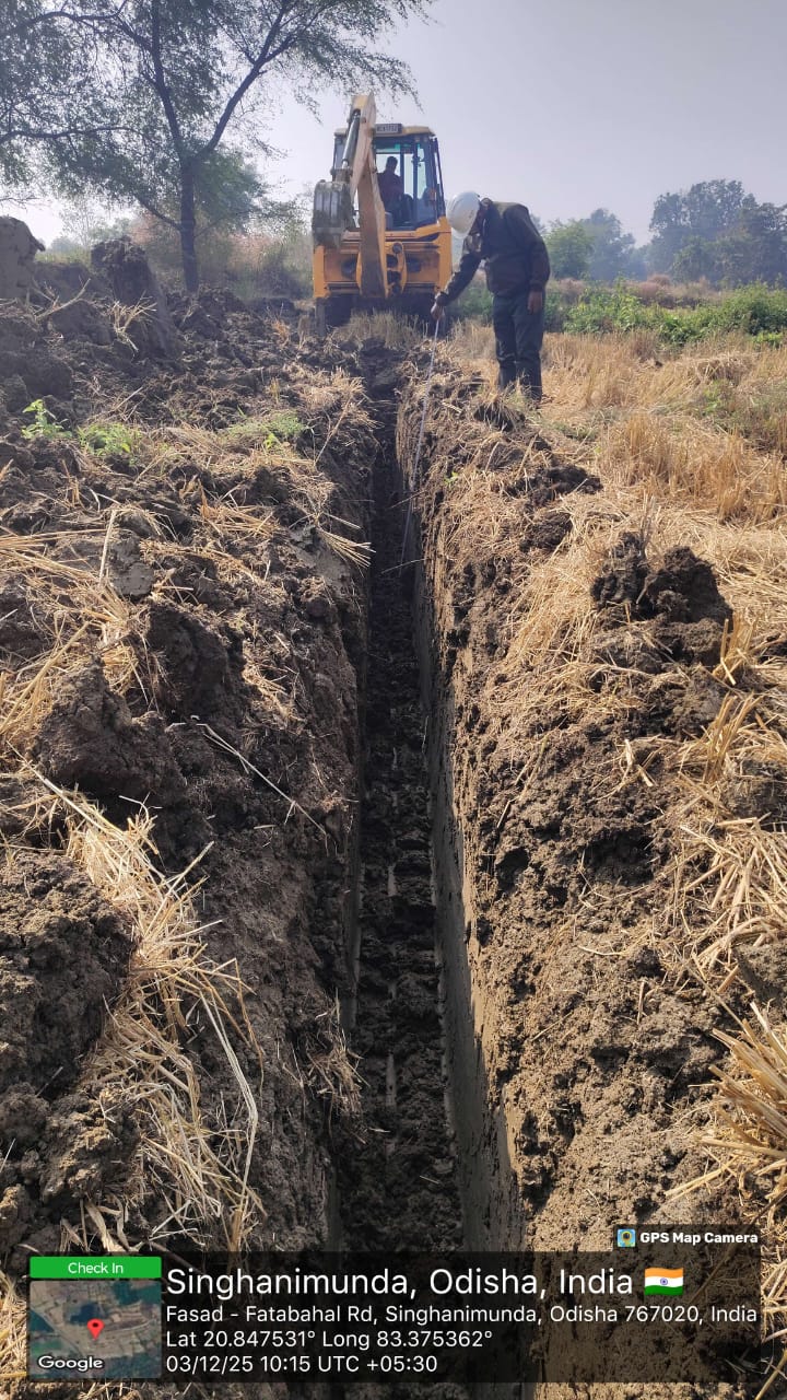 Excavation work is in progress for 75mm Dia HDPE pipe line from LO-307 to LO-307B(LM16) near village Singhanimunda .