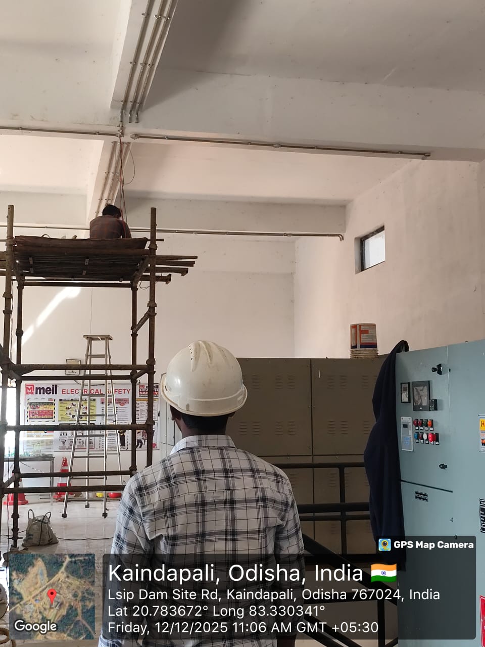 2.5 sq mm flexible wire laying work is in progress through 20mm Dia galvanized steel Conduit pipe for switch gear room indoor Lighting at Pump House.