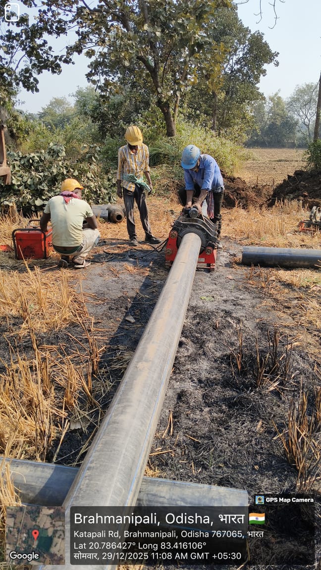 180mm Dia HDPE pipe jointing work is in progress at J-138 of RM-2 near village Brahmanipali.