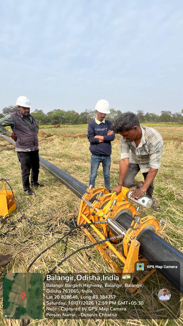 Butt fusion jointing work is in progress of 250mm Dia HDPE Pipe LO-159,LM-8 at village Uparudar in presence of PMC team.