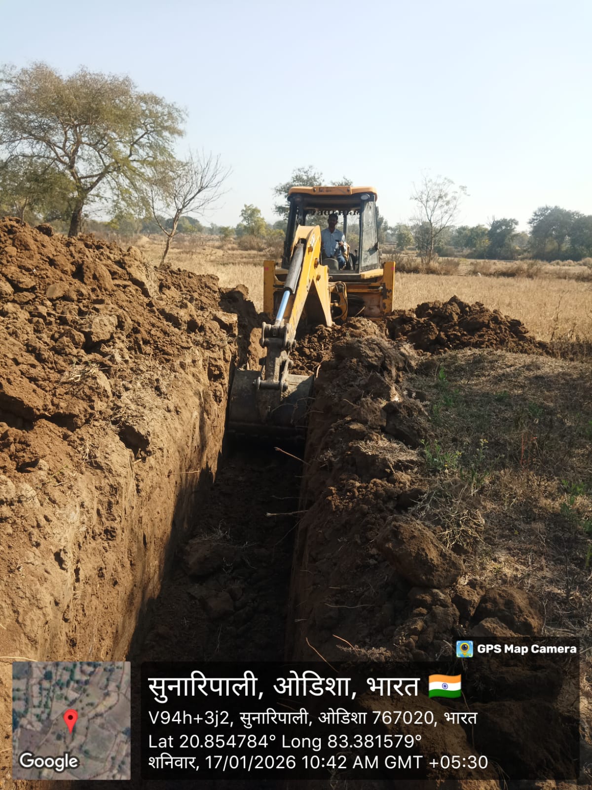 Excavation work is in progress for laying of 350mm Dia DI pipeline from node J-497 to J-562, RM-5 near village Baghapali