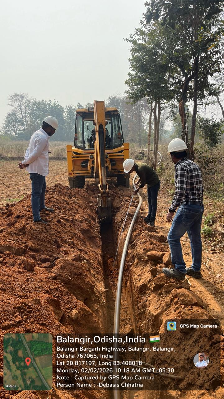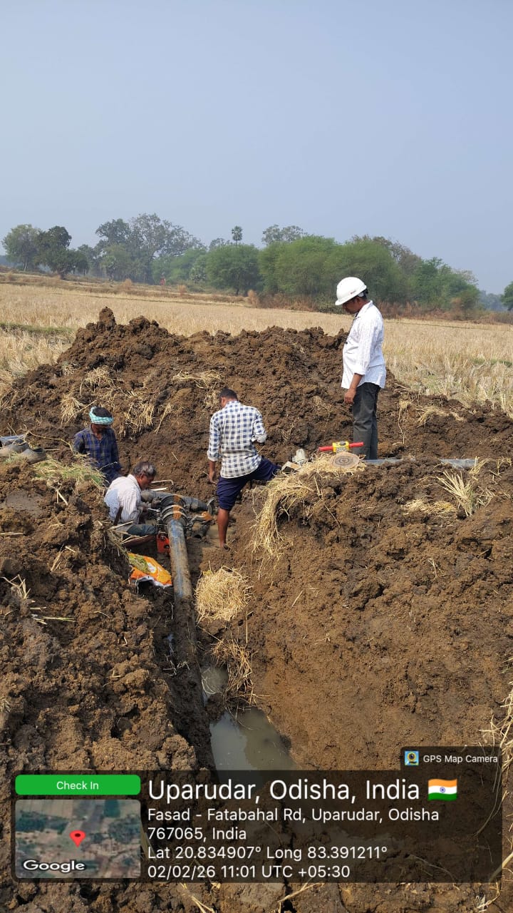 TEE connection work is in progress to HDPE pipeline at LO-283, LM-15 near village Buromunda.