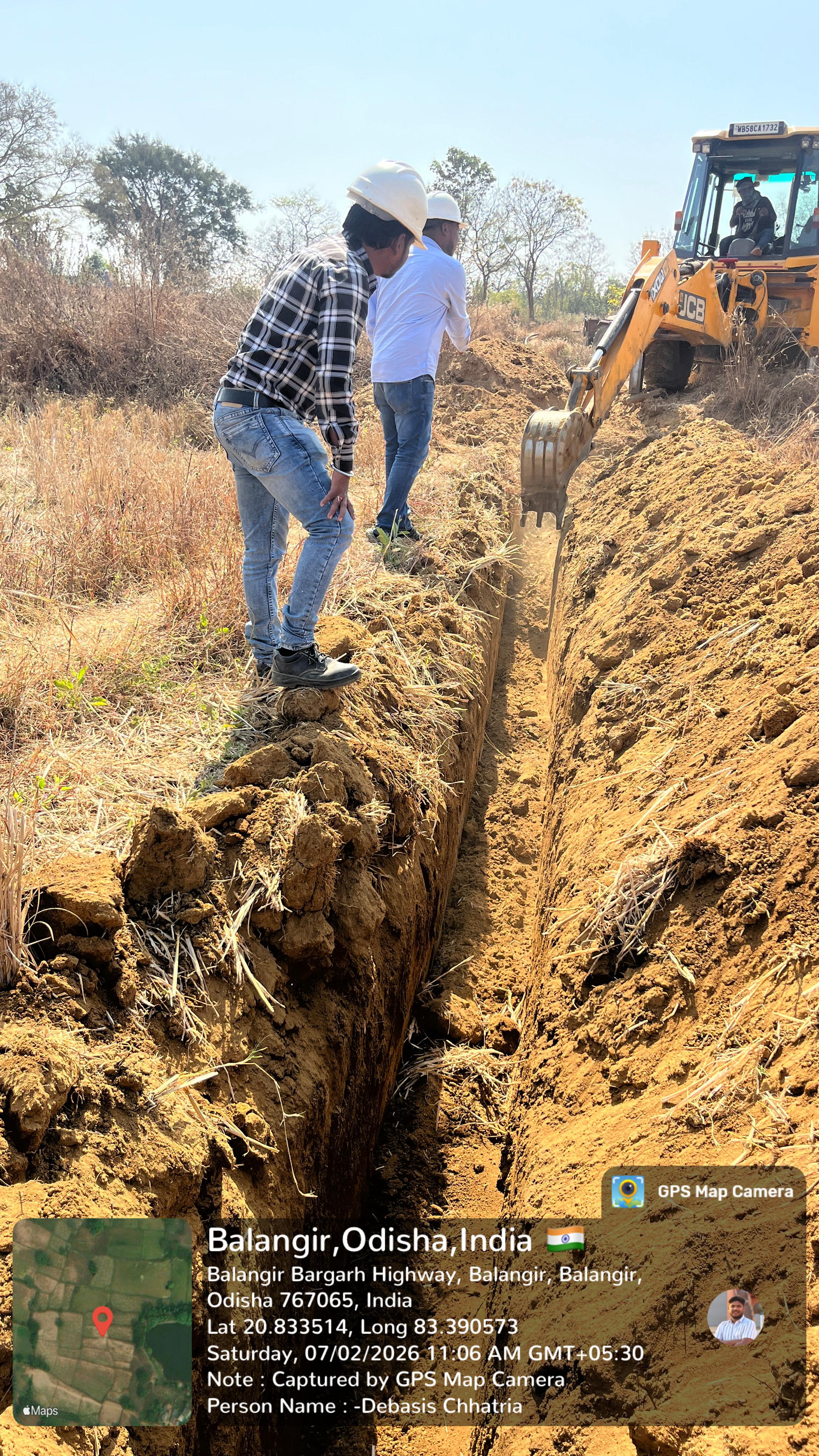 Excavation work is under progress for 75mm Dia HDPE pipeline OMS point LO 283A, Z-6074 , LM-15 for 1 hectare connection near village Buromunda.