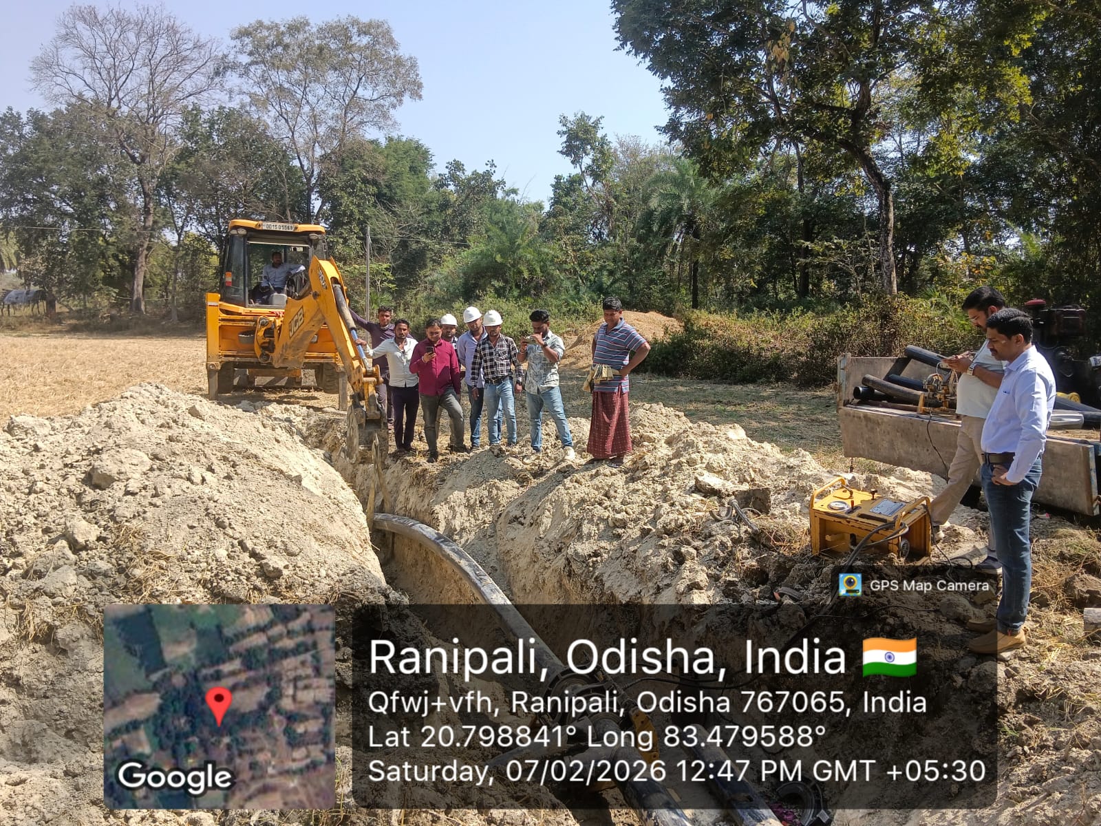 Gap closing work is in progress from node J -115 to J-253, for laying of 800mm Dia DI pipeline near village Birkel.