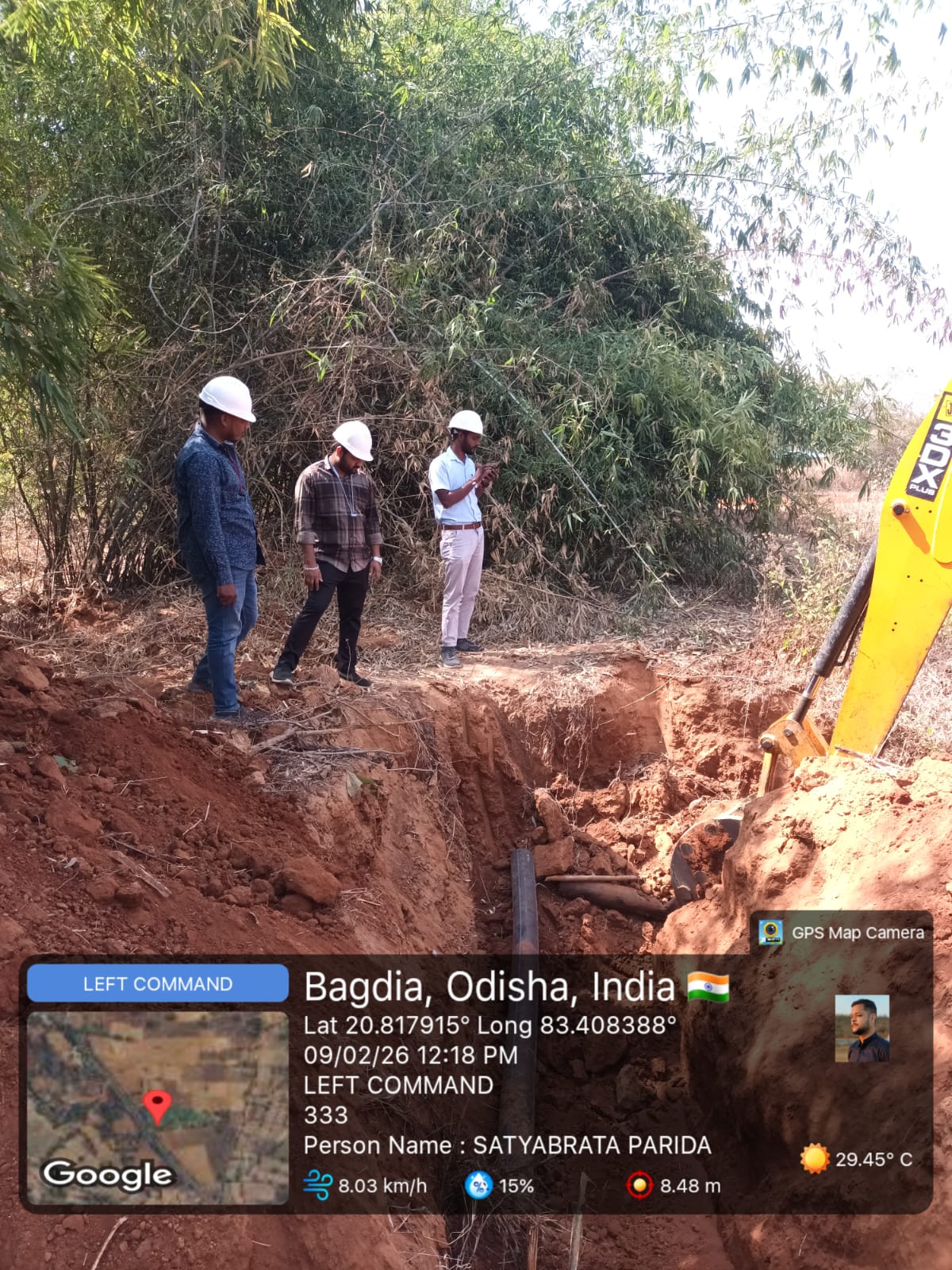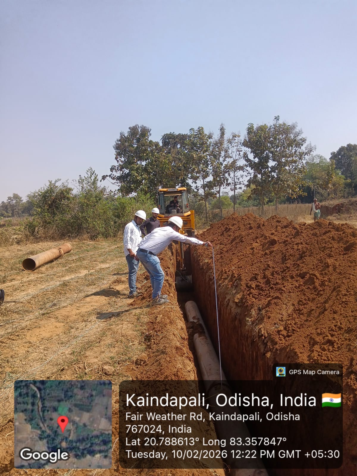 Excavation work is in progress for HDPE Pipe TEE connection at J-20 near village Taliudar in presence of PMC team.