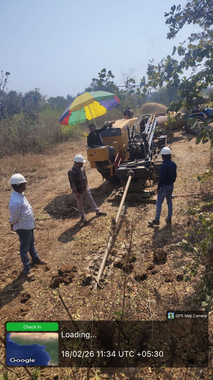 HDD machine road pushing work is in progress of 75mm Dia HDPE pipe line LO-291B to Z-7272, LM-15 near village -Singhanimunda.