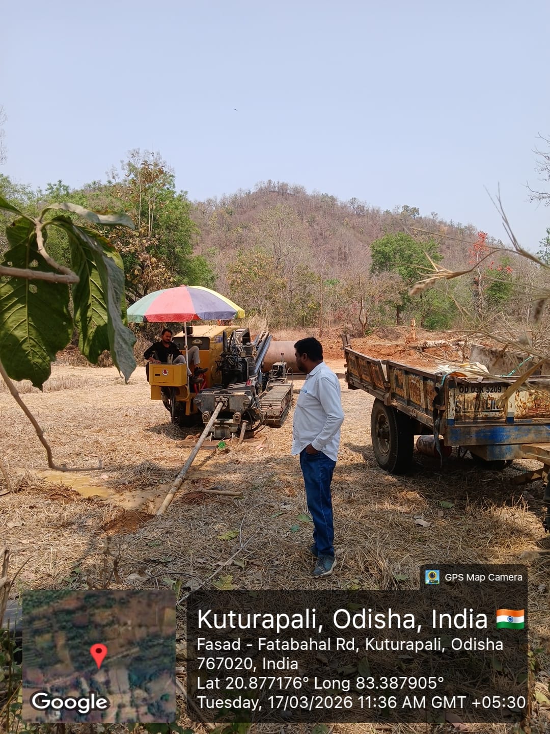 HDD machine road pushing work is in progress for road crossing work of 75mm Dia HDPE pipe line between at Lo-352A z -7031 of LM-18 near village Kuturapali.