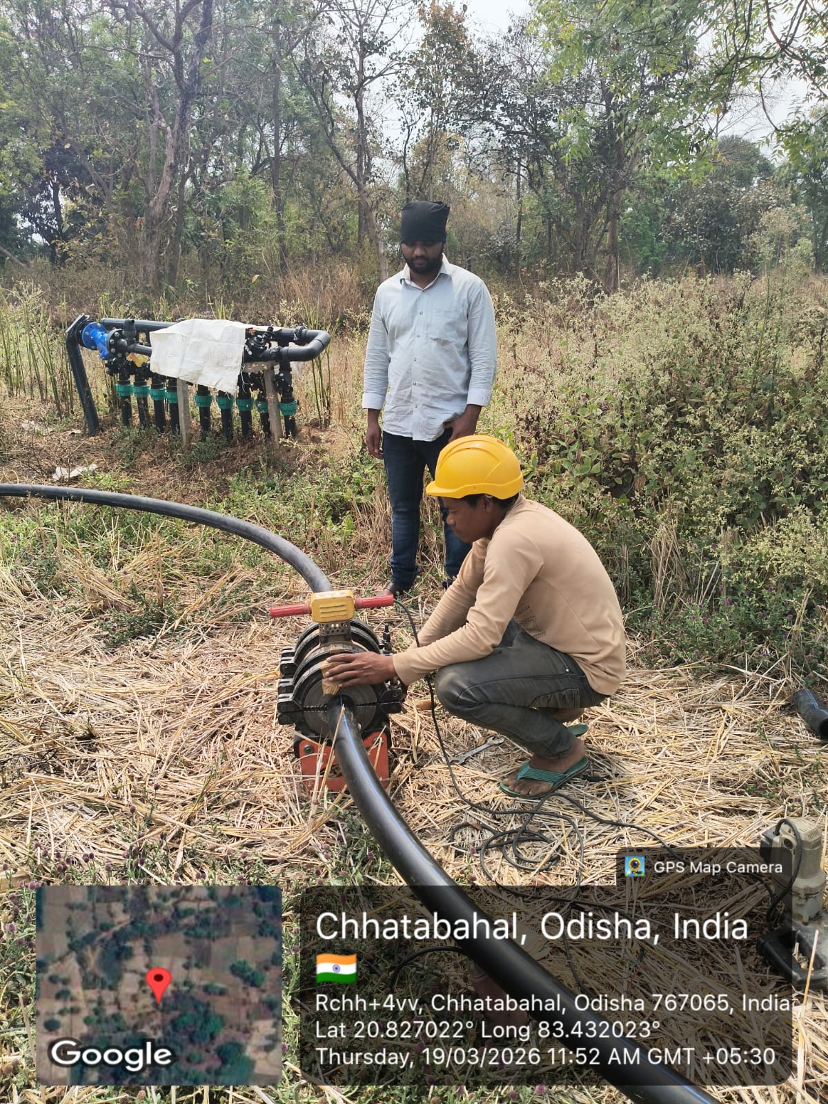 HDPE pipeline connection work is in progress at LO-32B near village Chhatabahal.
