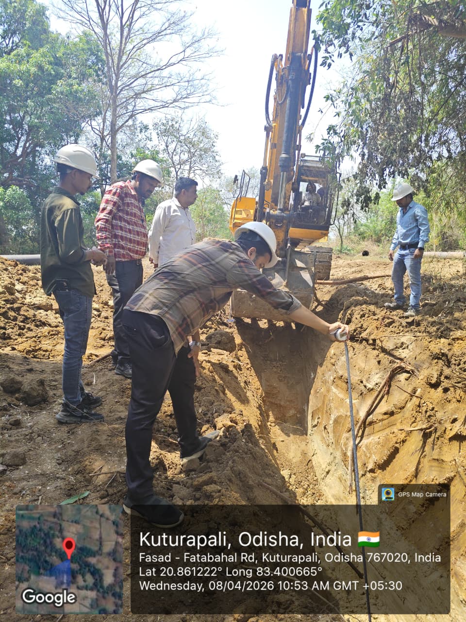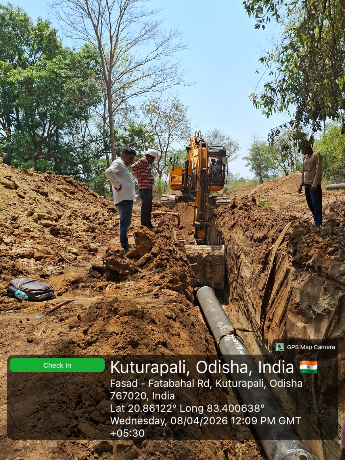 Excavation work is in progress for laying of 400mm Dia DI pipeline from J-254 to J-38 near village Birkel In presence of AE and PMC team.