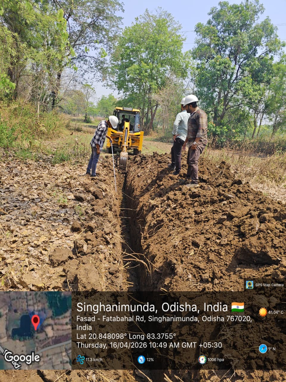 Excavation work is in progress for HDPE pipe connection at LO-293 to J-406, LM-15 near village Singhamunda in presences of DoWR AE and PMC team.