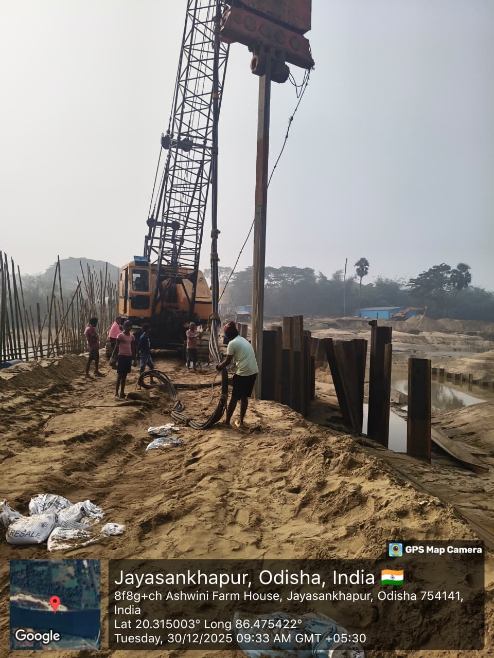 • Upstream cut off at Right side under-sluice divide wall 5.950 mtr length sheet piles driving work in progress at TIKHIRI-ISS project-30.12.2025