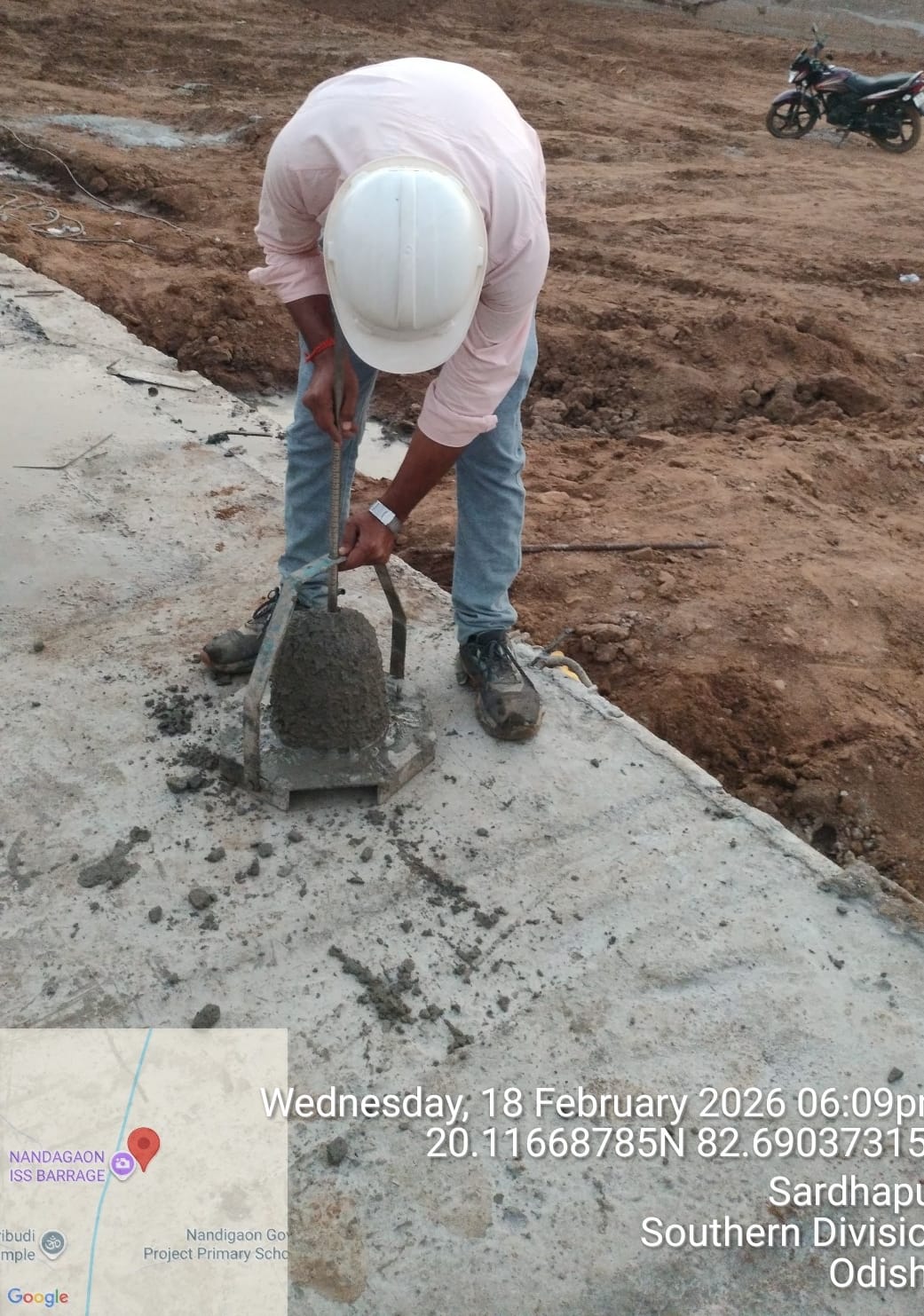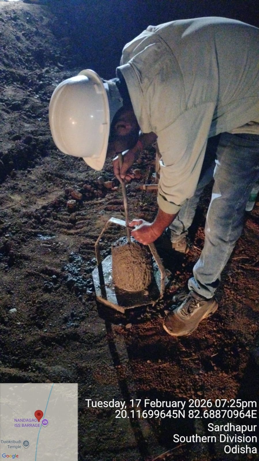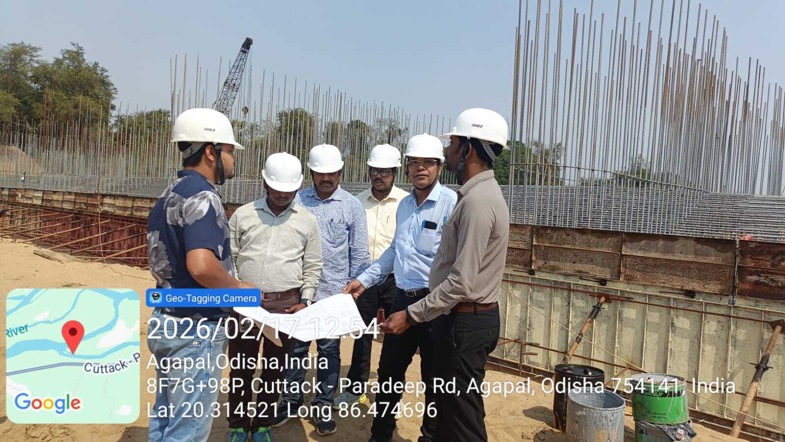 SE- Kendrapara Irrigation Division including GM, SM, JE of OCC and SDO, AE, JE of QC&QA-Chandikhole visited the site today. PMC and representatives of Agency were present at site during the visit- 17.02.2026