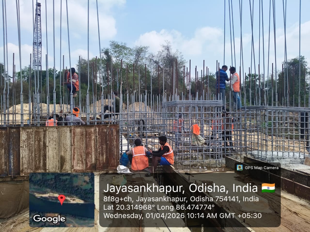 Barrage bay raft and pear reinforcement fixing work in progress at baitarani iss project.
