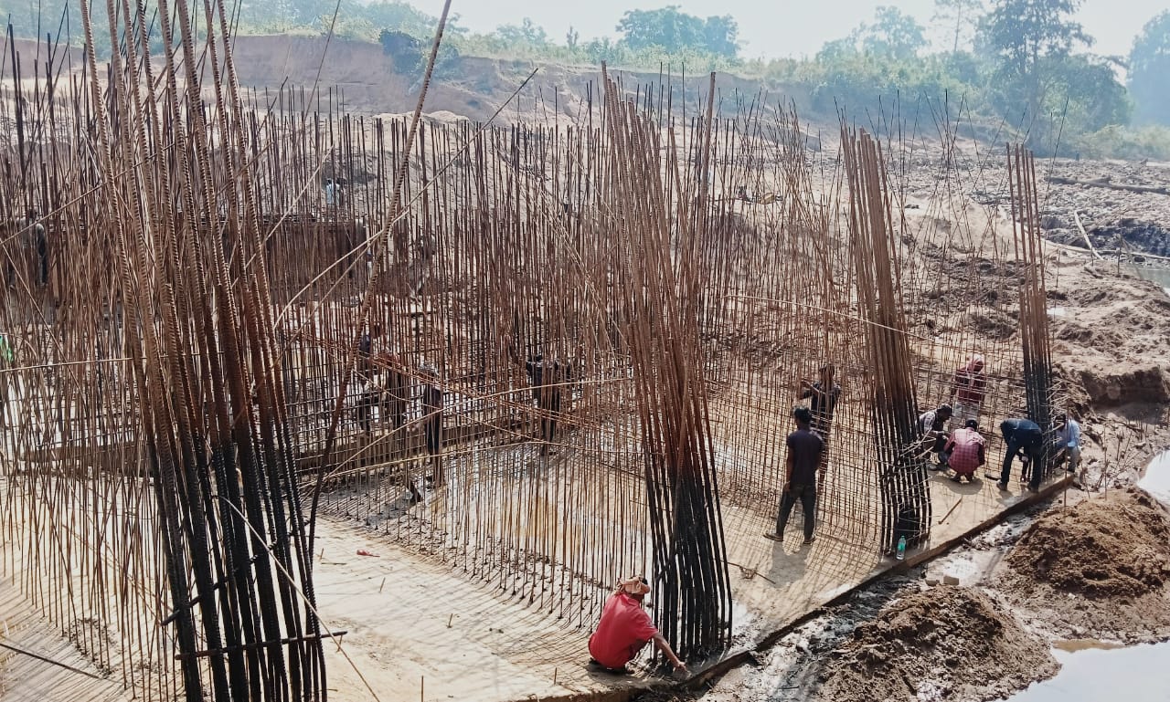 Cutting, Bending & Binding of steel reinforcement for pre-cast girder of the bridge is under progress.