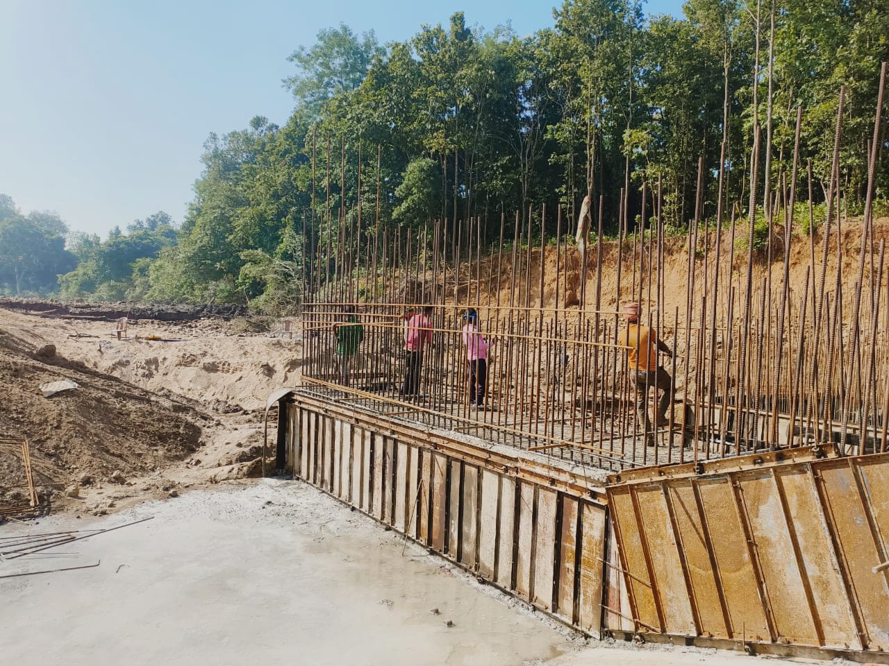 RHS abutment 5th lift reinforcement binding work in progress