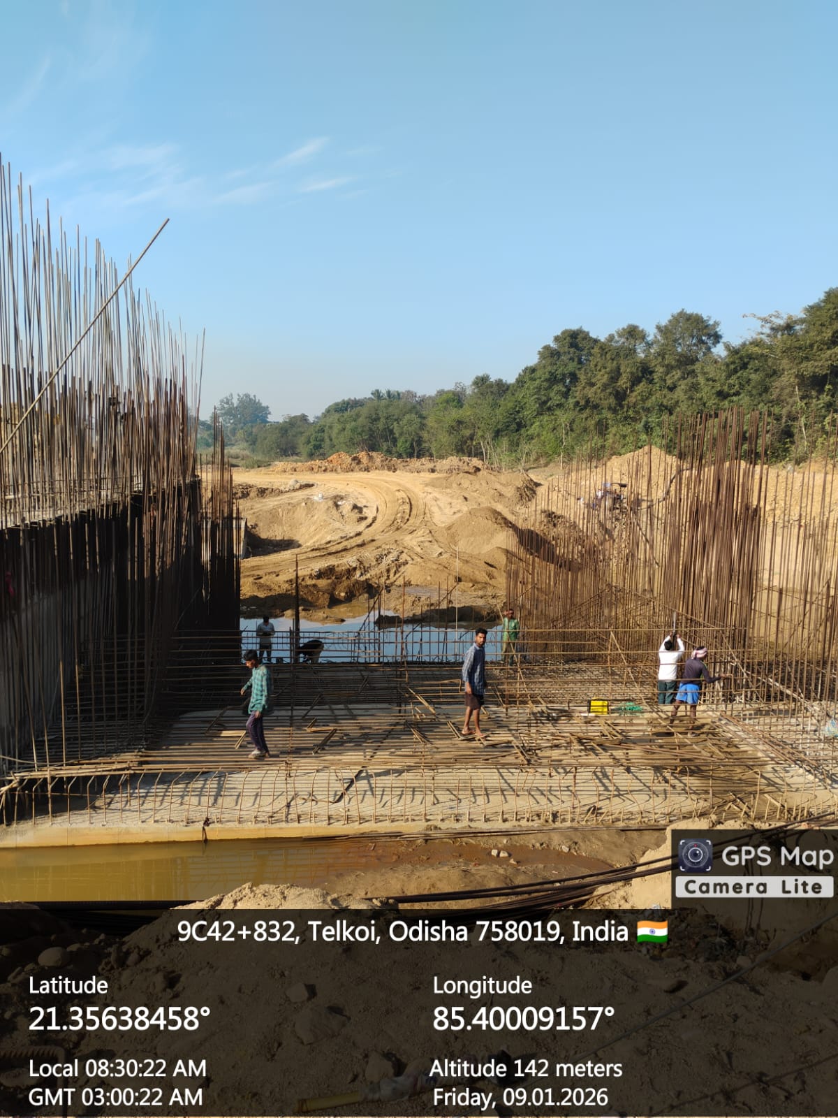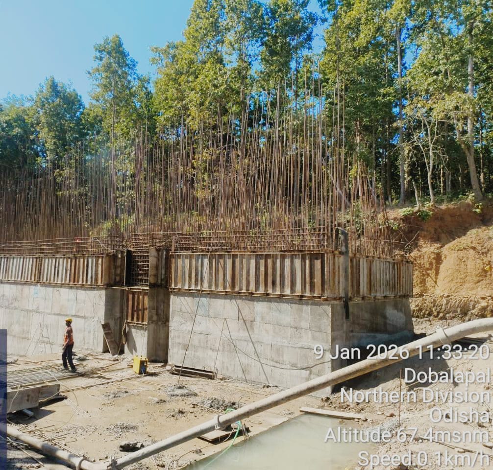 5.Reinforcements works in binding, tying and placing in position including rigid and smooth shuttering at right abutment in monolithic of it's counter fort walls at D/S portion is in progress. The cover maintained is is not uniform as noticed by DTL, Tel Basin and has been directed to do the needful before submitting RFI n placing concrete. Accordingly the cover of abutment and CF Walls are rectified in presence of CME n Sr. Site Engineer of PMC and Site Engineers of PMC and EPC Agency by maintaining 75mm cover as per the provision of approved drawings on 08.01.2026