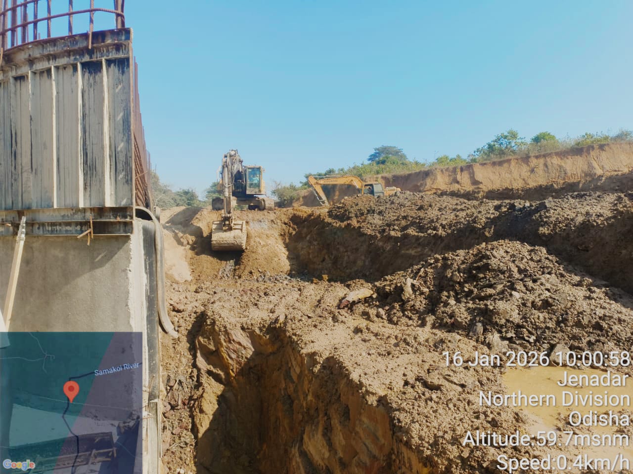IEE, QCE & Geologist of PMC Sambalpur visited ISS Kirasasan. The excavation of D/S channel of LHS Sluice Bay is in progress.