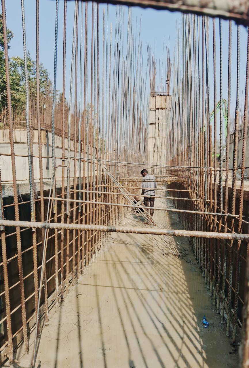Binding of reinforcement for Pier No-8, 11th lift is under progress.