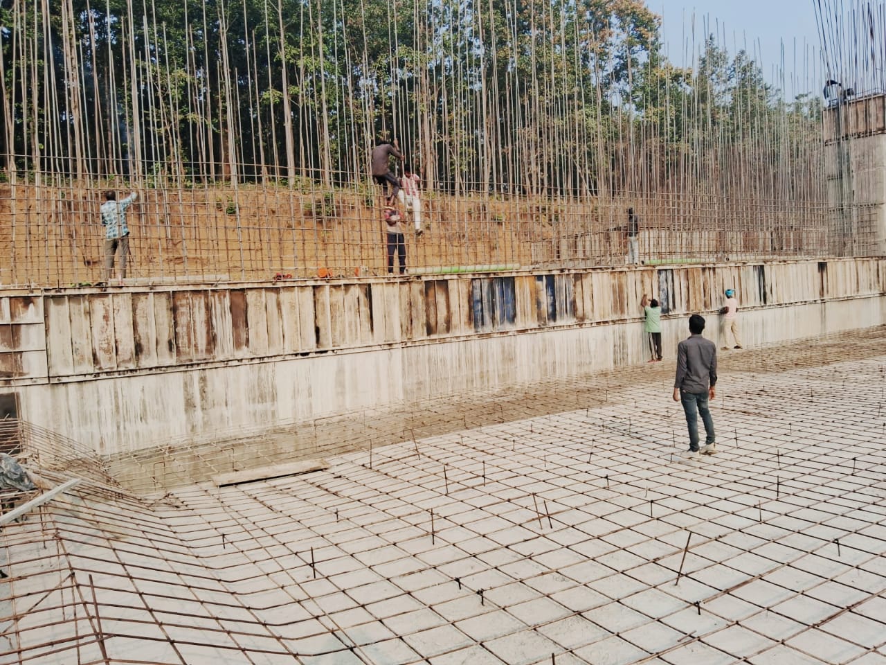 Binding of reinforcement for D/S Wing wall, Raft is in Progress.
