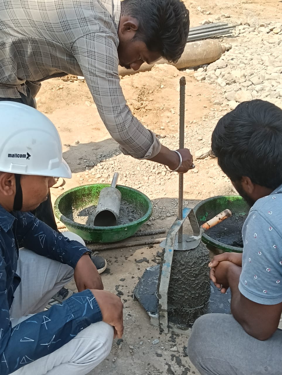 Slump testing M20A20 (Value 85 mm) of Pier No-5 to Pier No-6 U/S Gravity floor, 5th lift Layer PCC done in presence of Client & PSS Team.