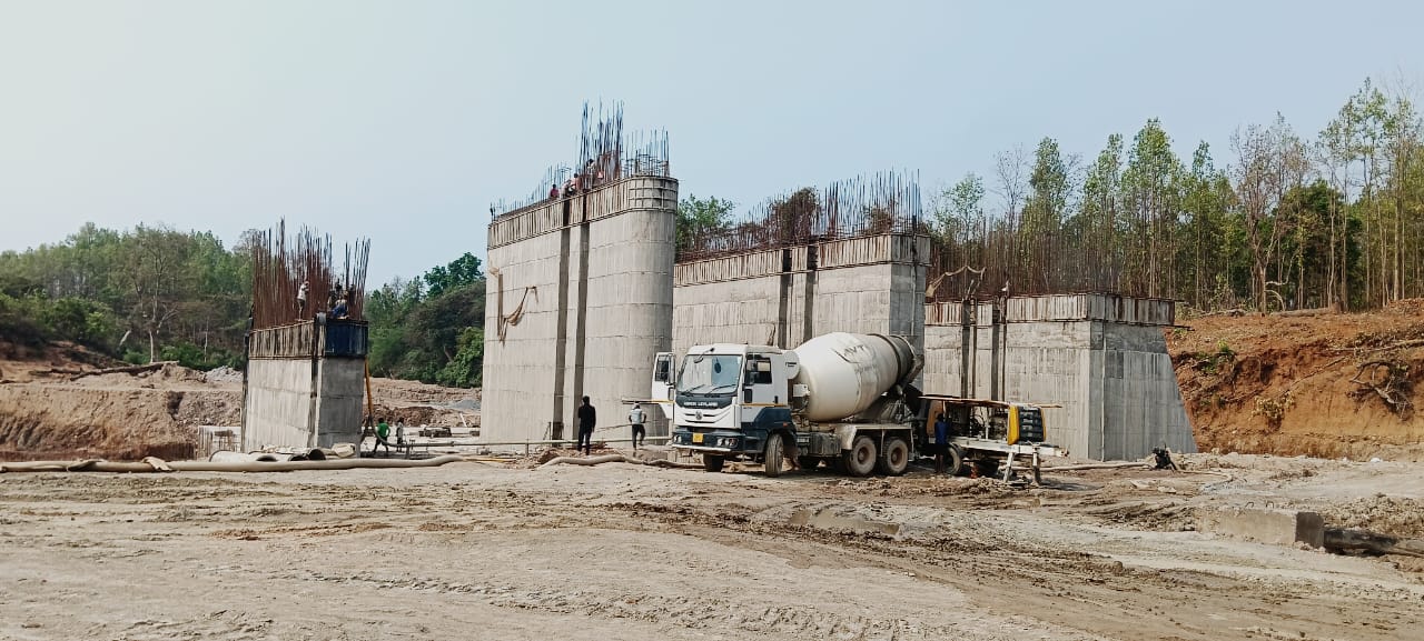 (a) Construction of RCC cutoff wall of U/S right Divide wall is already completed and the PCC with M15A40 grade at bottom of Raft foundation has also been completed on dt. 02.04.2026.