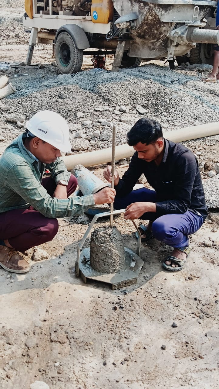Slump testing M25A20 (Value 80 mm) of Pier No-4, 4th lift done in presence of Client & PSS Team.
