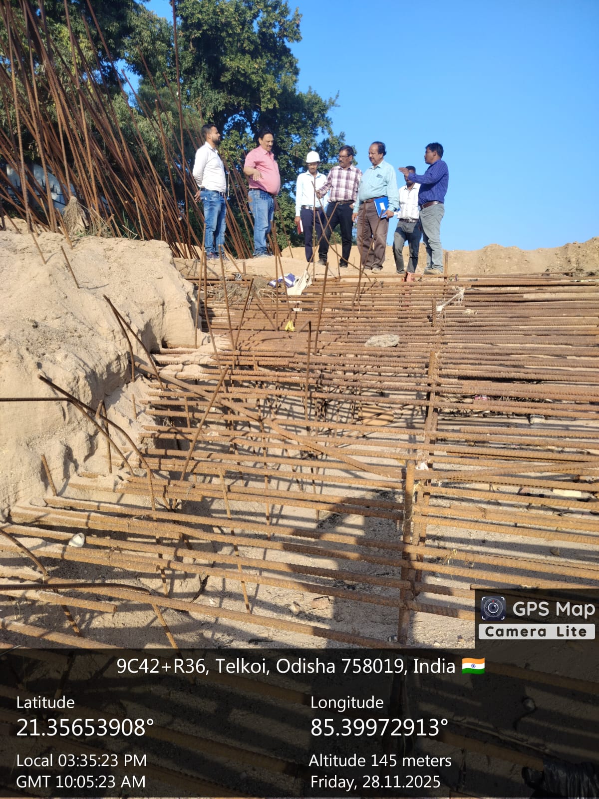 Visited by Dy. TL, Brahmani Basin, Samal in presence of A.E.E & A.E, RDD, QAE and PSE of PSS team along with Dy. PM of EPC agency regarding review the Concreting, Shuttering & Cleaning of reinforcement at Site.
