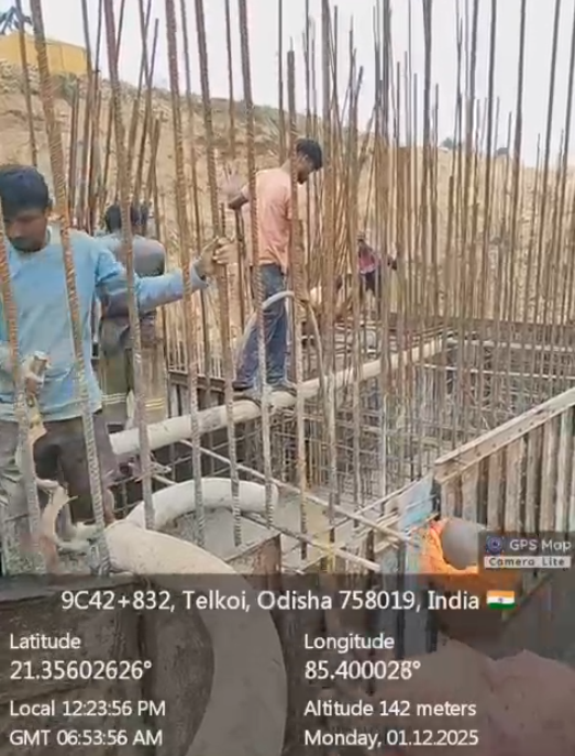 Concrete casting with PCC M20A20 grade for total of 1no. of CC block at U/S right flared out wall from sec.4-4 to sec.5-5 for 2nd lift of hight 0.6m upto RL-237.00m is in progress in presence of JE,KID, PM EPC agency, Site Engineers of PMC & EPC agency. Slump achieved 75mm on 01.12.2025