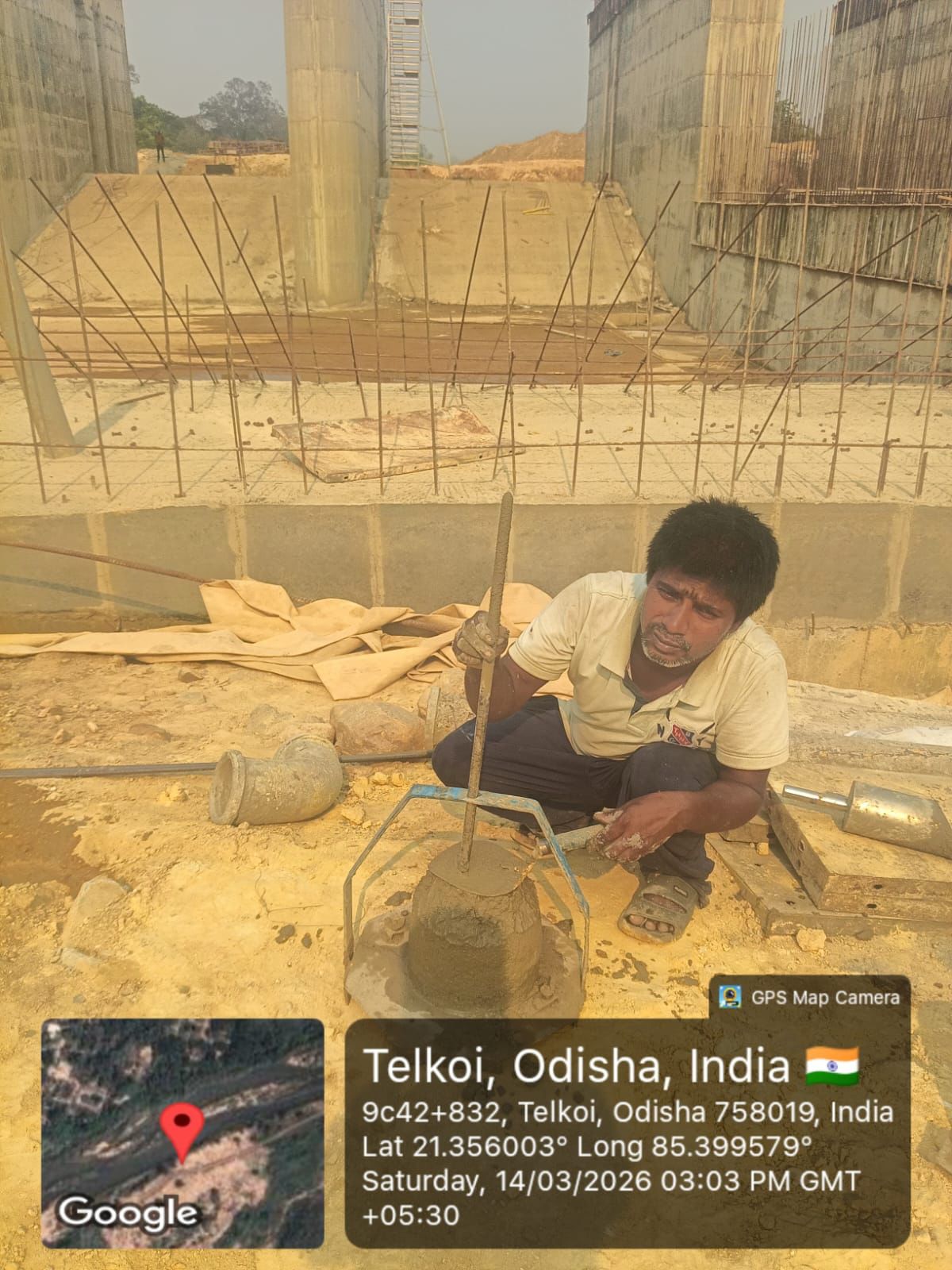 Slump testing M35A20 (Value 85 mm) of Gantry Girder No-1, 1st stage done in presence of Client & PSS Team.