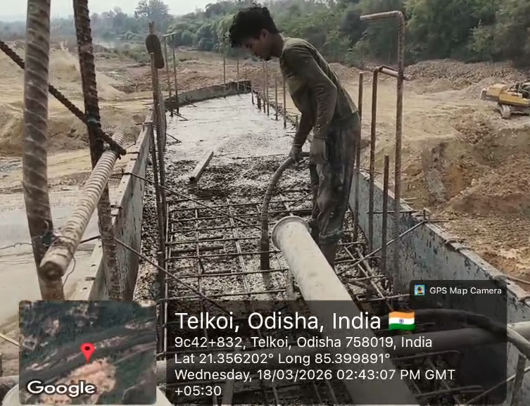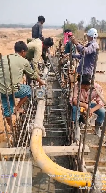 (iii) Fixing & placing of 8mm dia B-type mesh bars @ 2 layers at both end points of girder is completed. iv)The area is ready and passed by SE KID Bhawanipatna for placing with RCC M35A20 grade on 18.03.2026